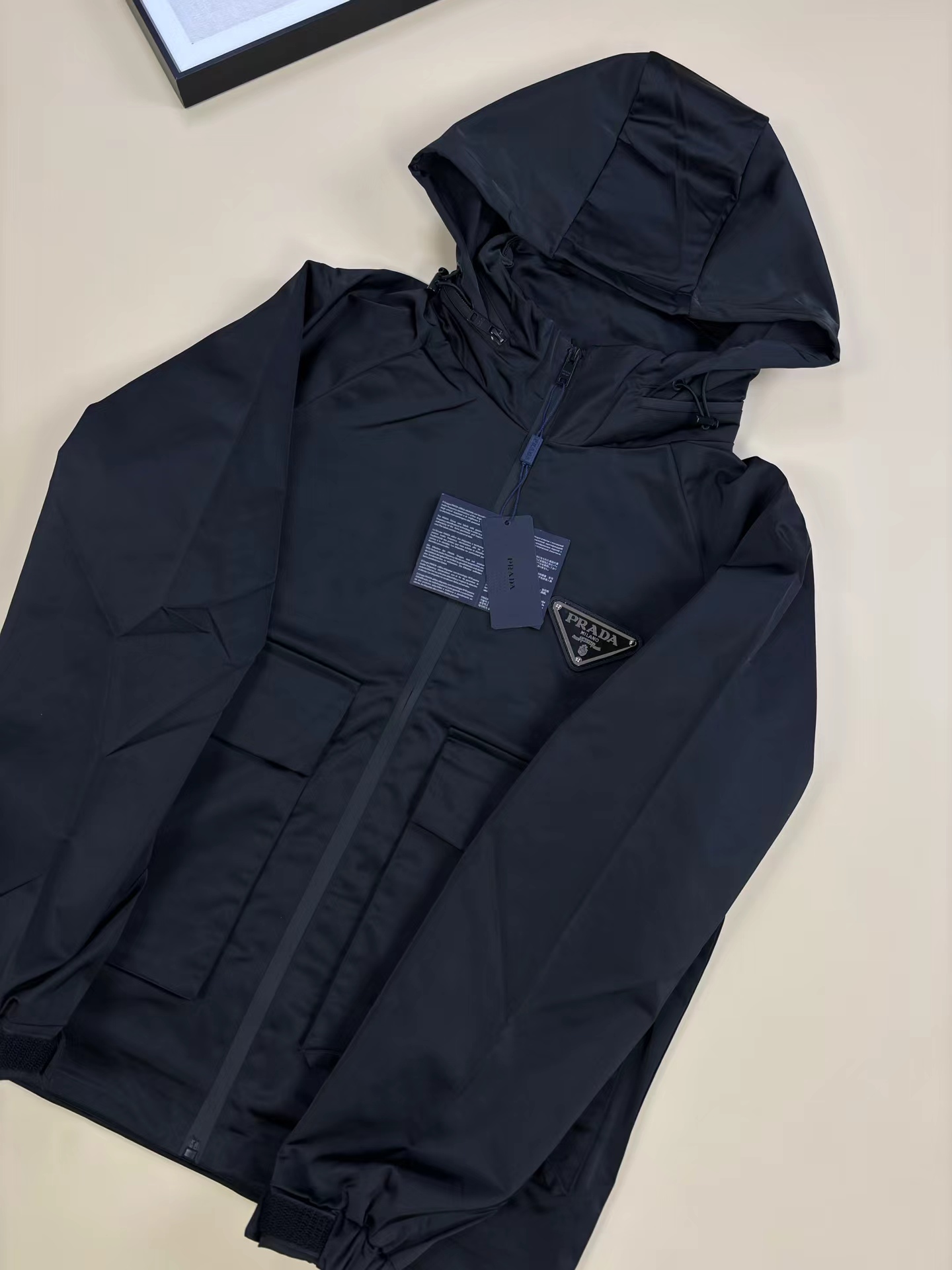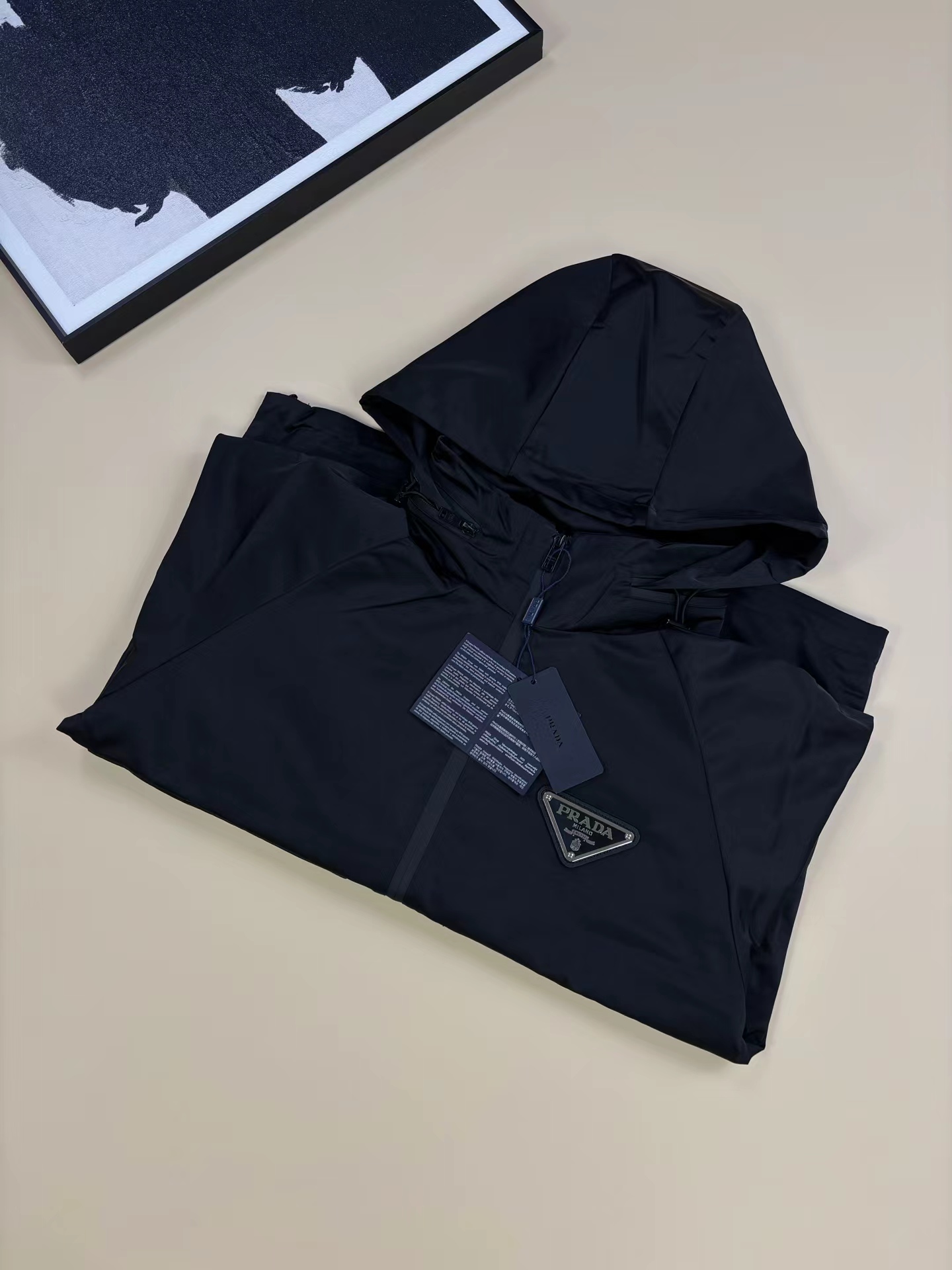 时尚休闲连帽夹克翻领连帽外套。帽可以收!定制面料 上身舒适柔软 面料光滑手感十足 四面弹上身透气不闷人 纯黑衣身是极简画布,大口袋机能设计+可调节抽绳,在实用中注入先锋感,将米兰的极简酷感与街头的随性松弛揉成独一份的风格语言。哑光黑金属质感细腻,连帽抽绳+袖口调节扣,风天锁温、日常造型随心切换,功能性里藏着jing致感;利落剪裁+宽松廓形,松弛与奢牌的挺括感平衡得恰到好处;
