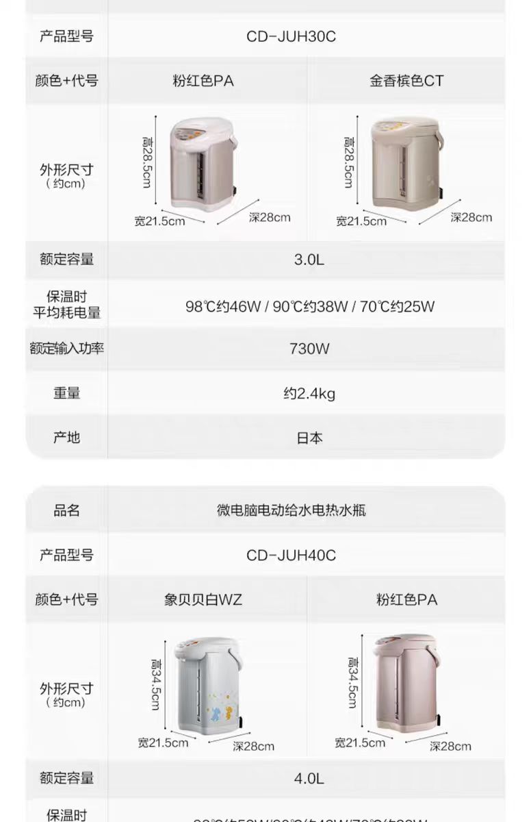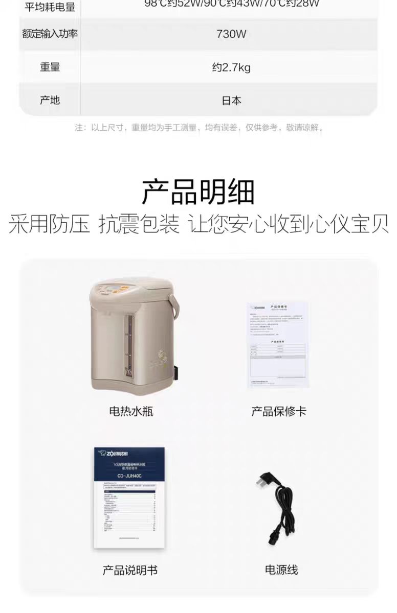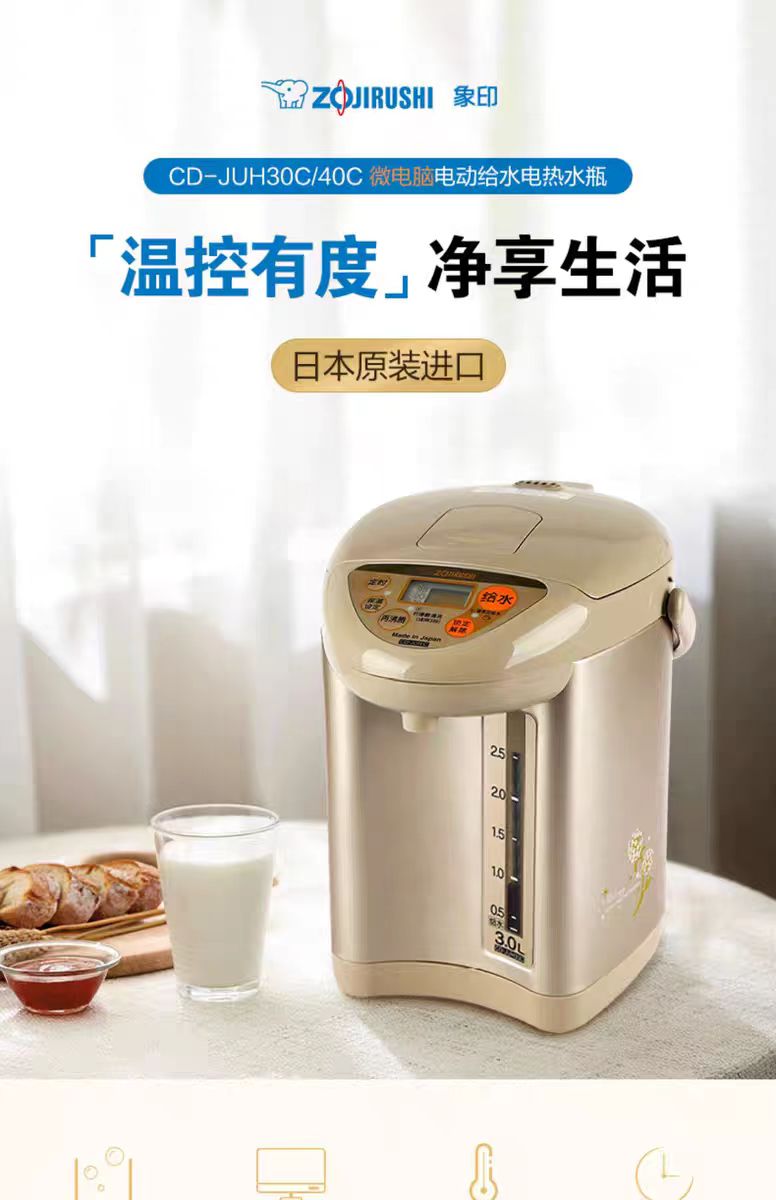 【春上新】10楼 象印 电热水瓶 JUH40C 贝贝白 4L 吊牌价3198元 活动价1799元