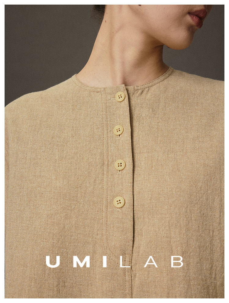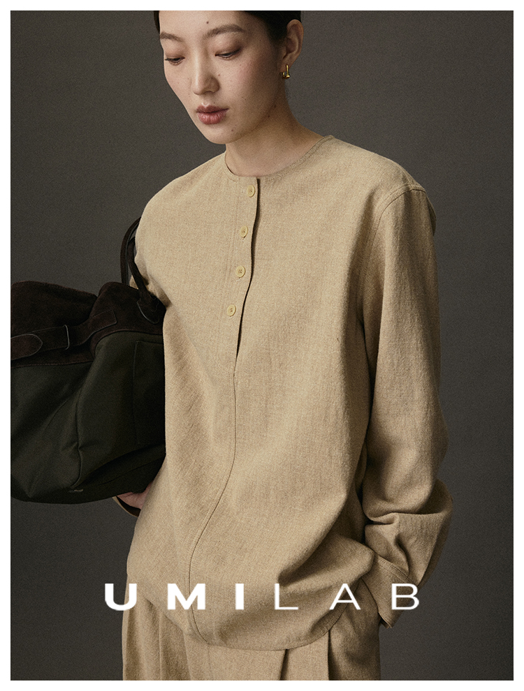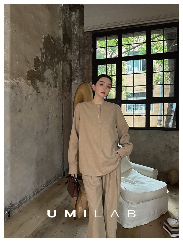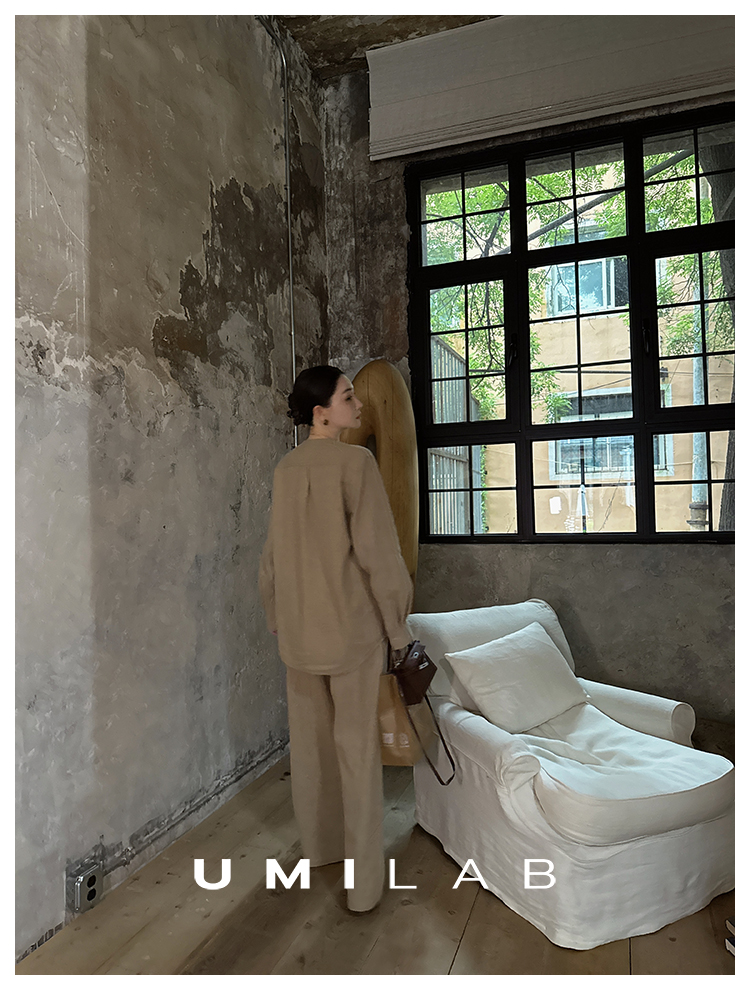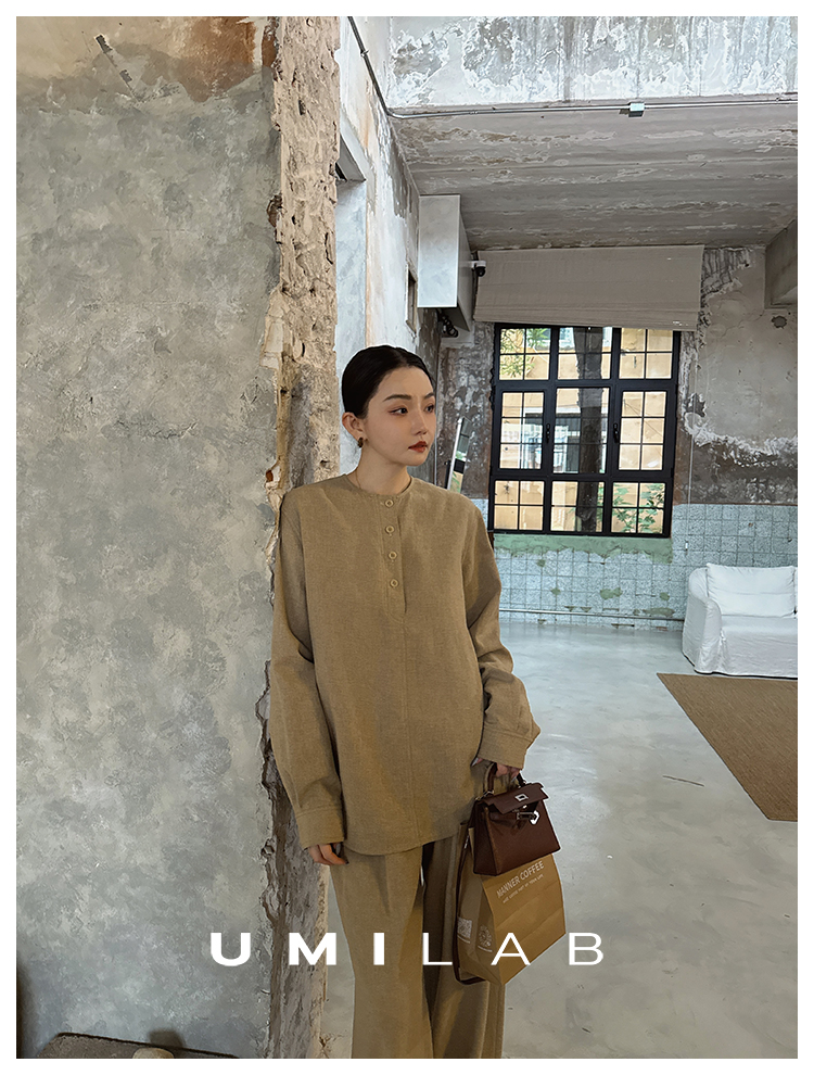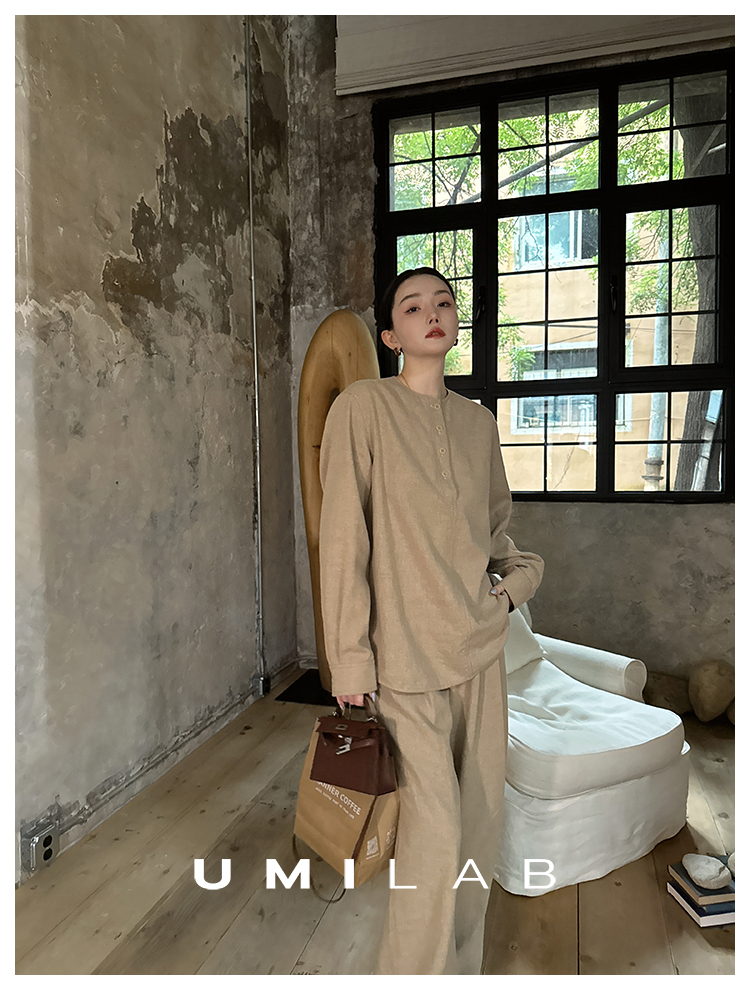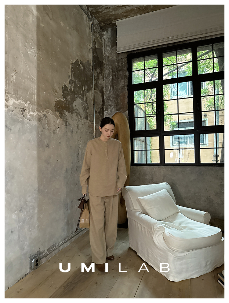 UMILAB|岩序*老钱套装 亚麻+羊毛+棉宽松圆领上衣/松紧长裤E268W