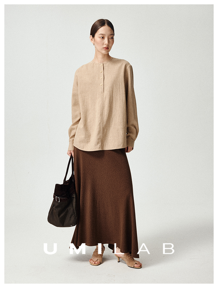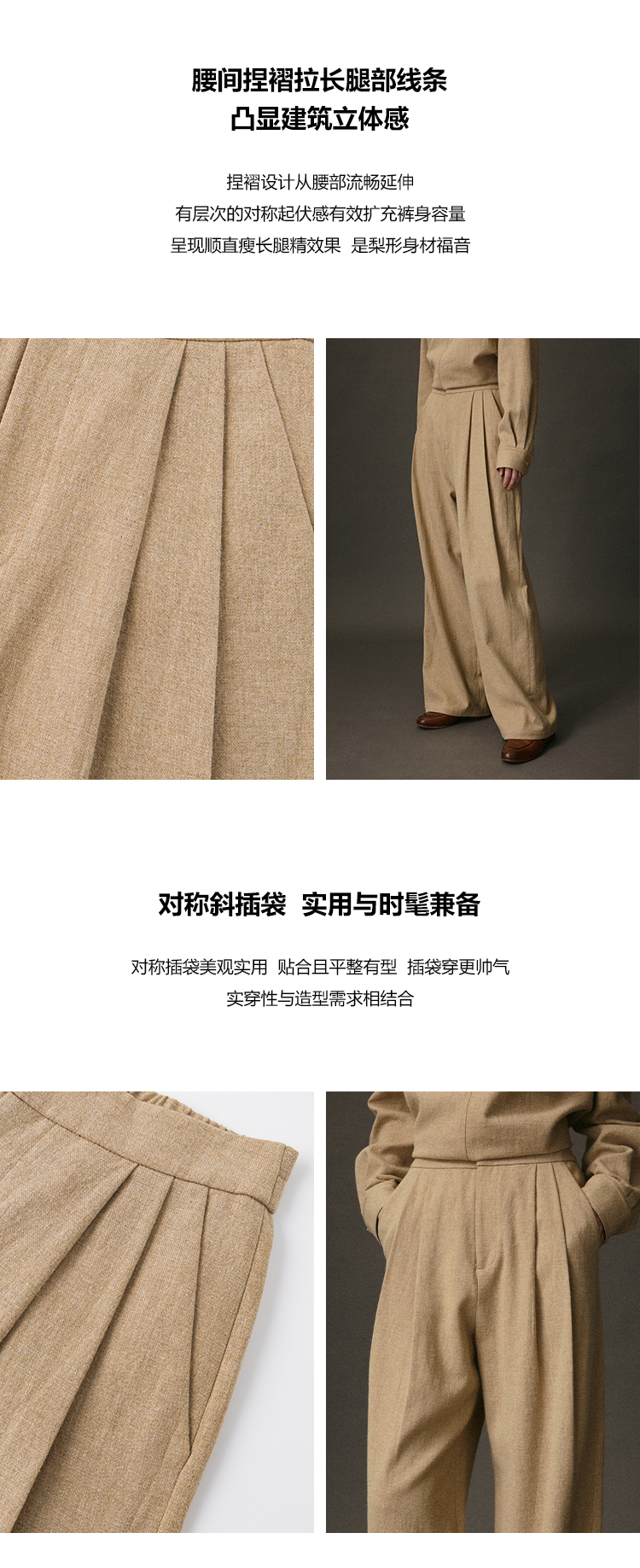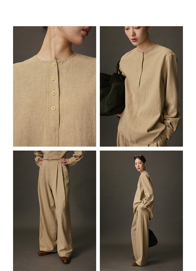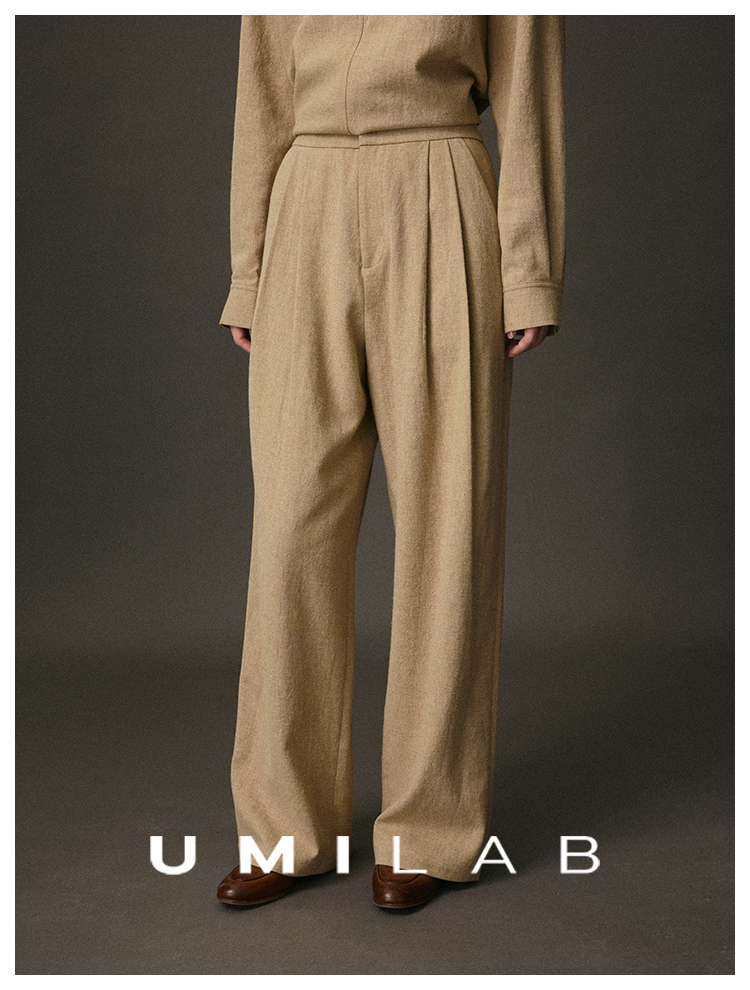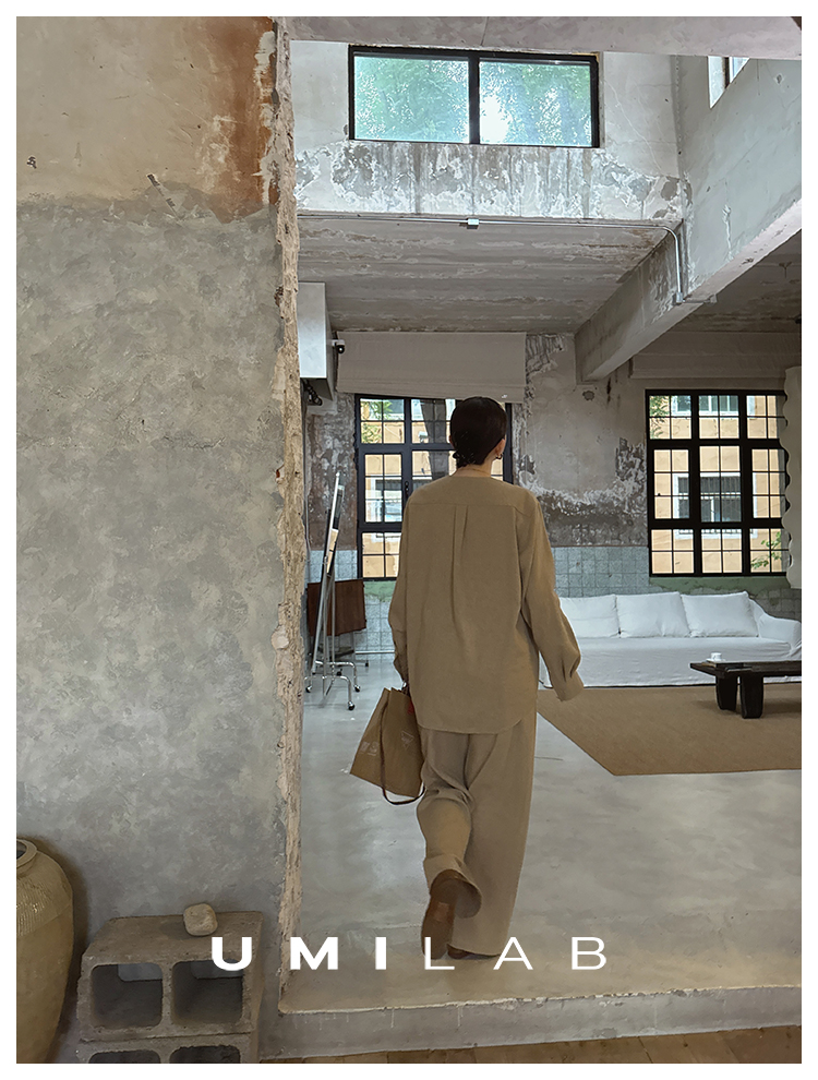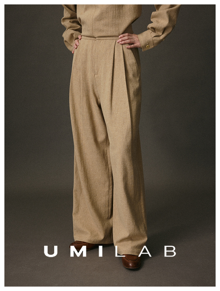 UMILAB|岩序*老钱套装 亚麻+羊毛+棉宽松圆领上衣/松紧长裤E268W
