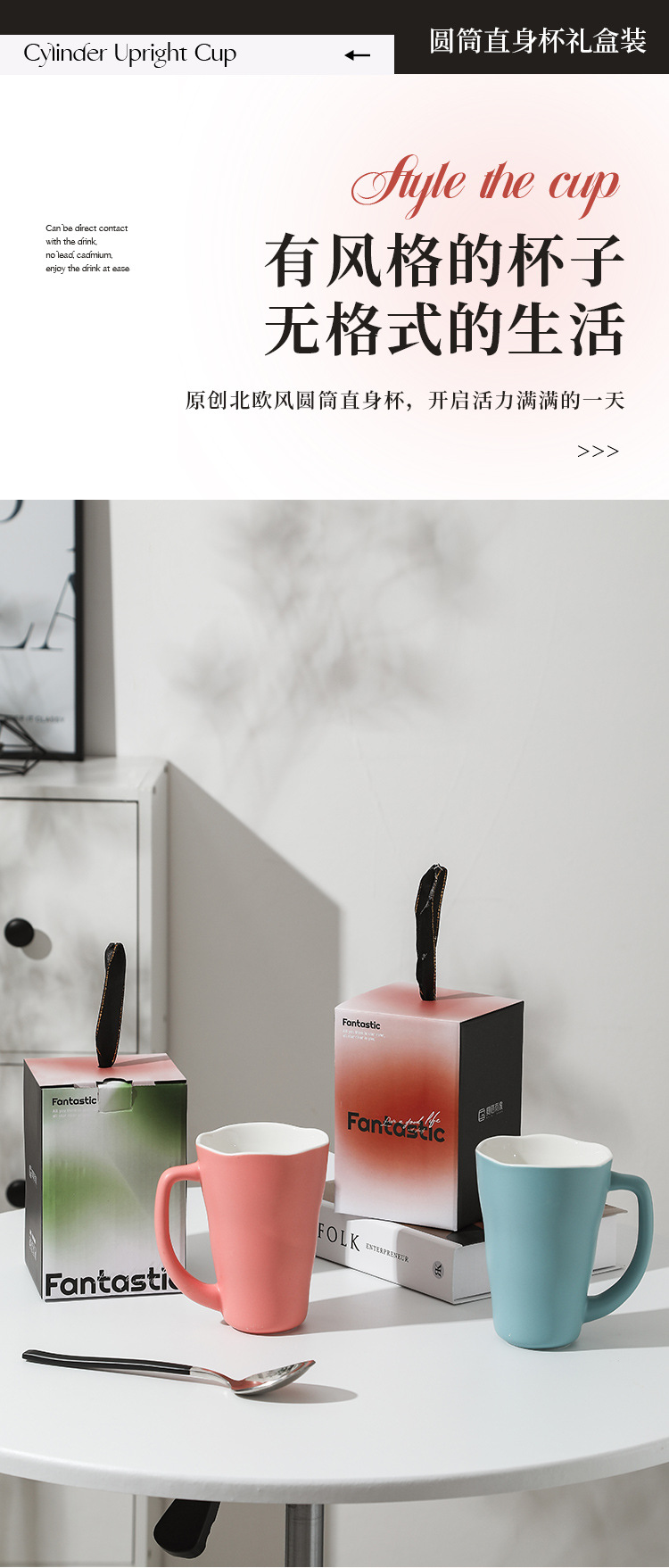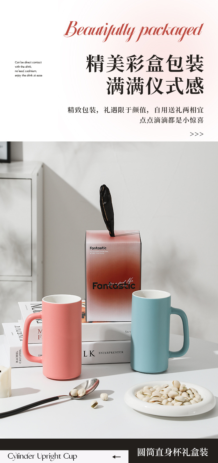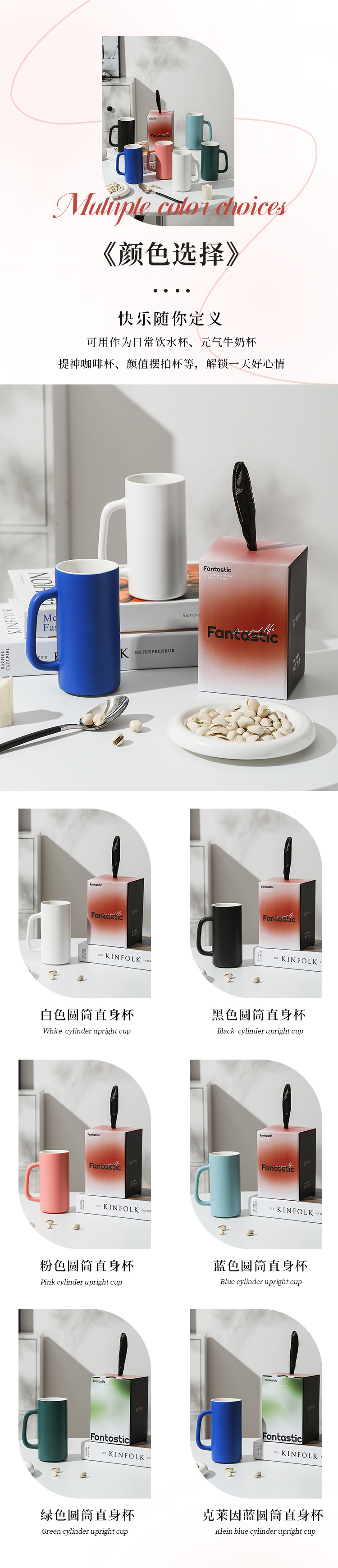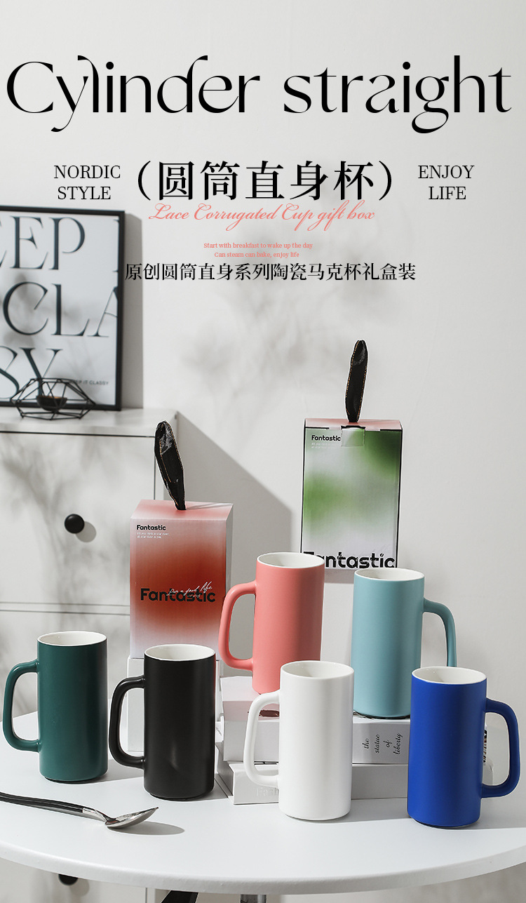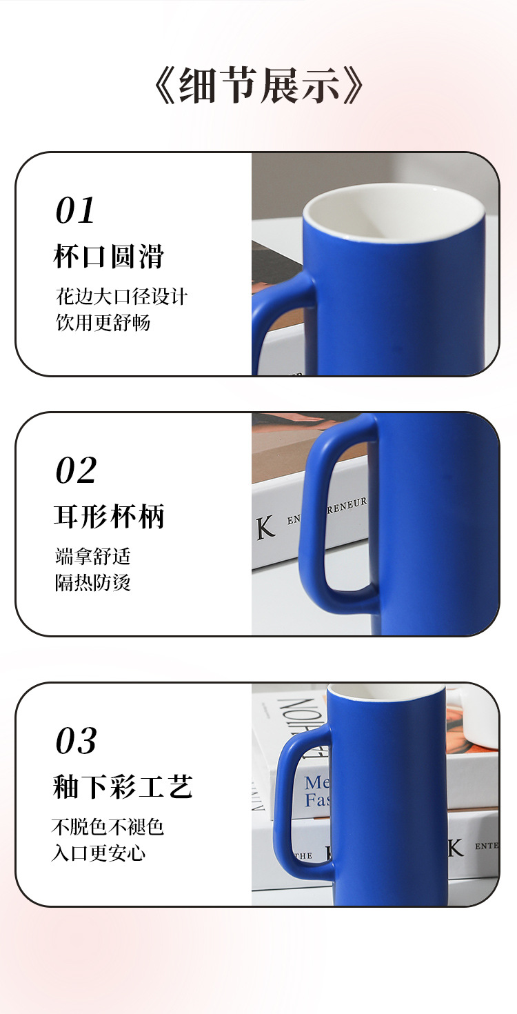 【圆筒直身杯】现代简约纯色马克杯办公室喝水杯子陶瓷茶杯家用礼盒装克莱因蓝