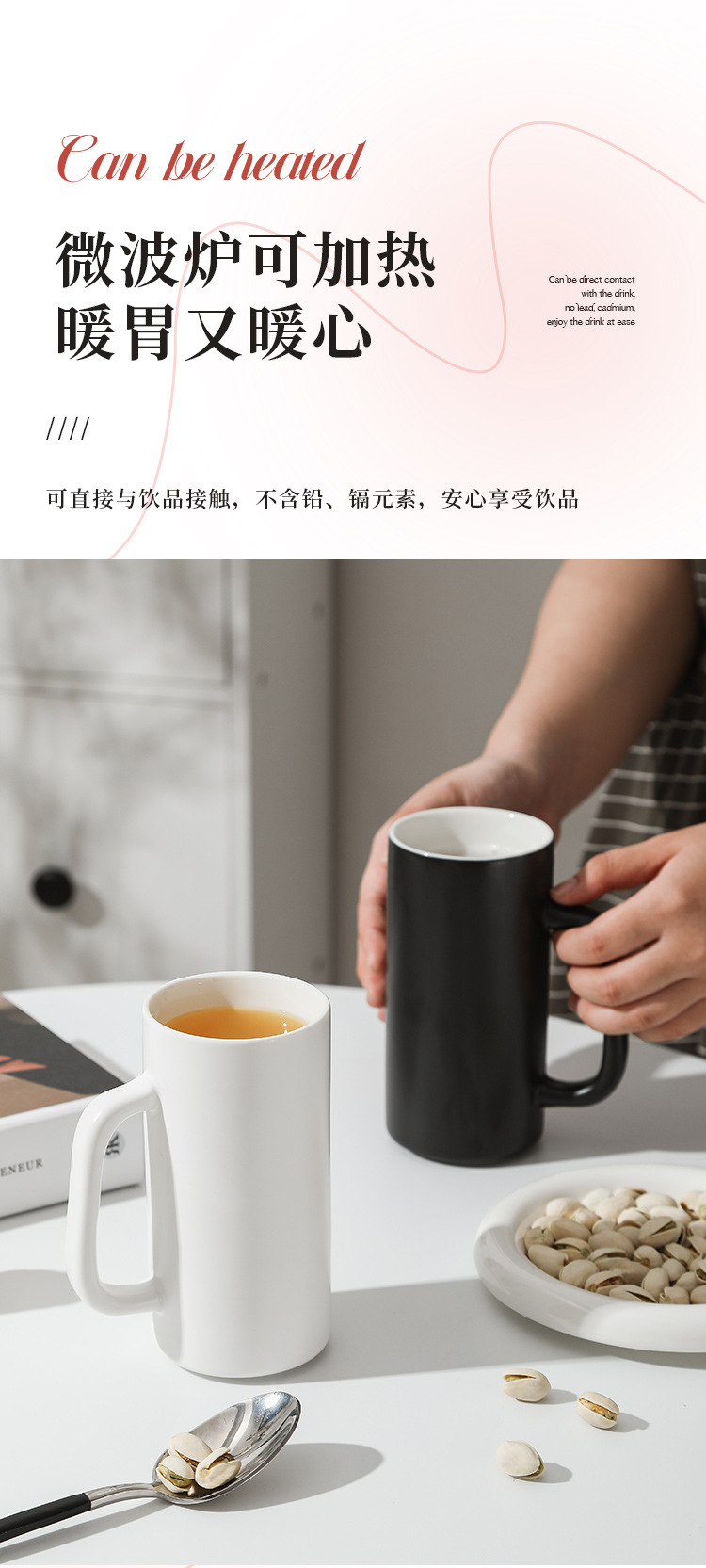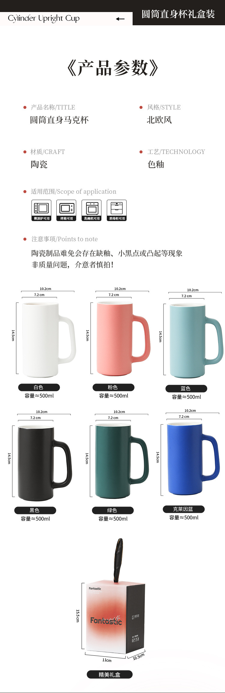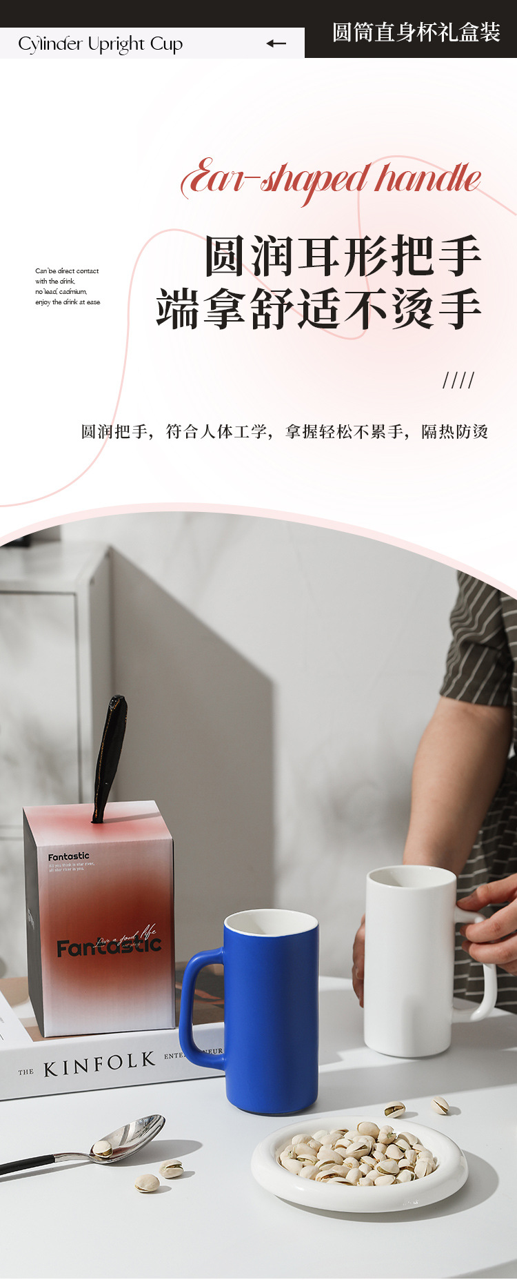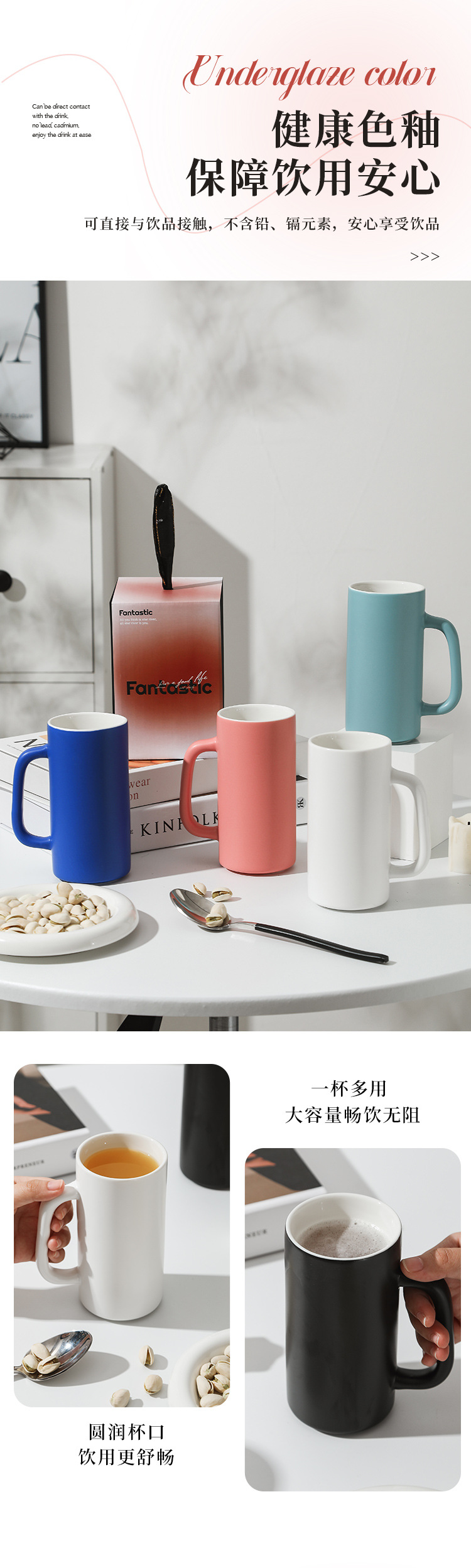 【圆筒直身杯】现代简约纯色马克杯办公室喝水杯子陶瓷茶杯家用礼盒装克莱因蓝