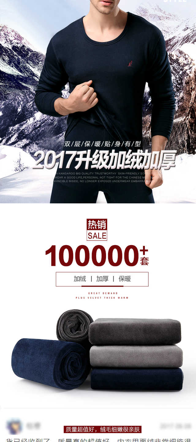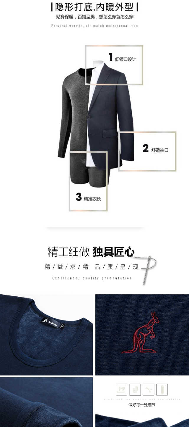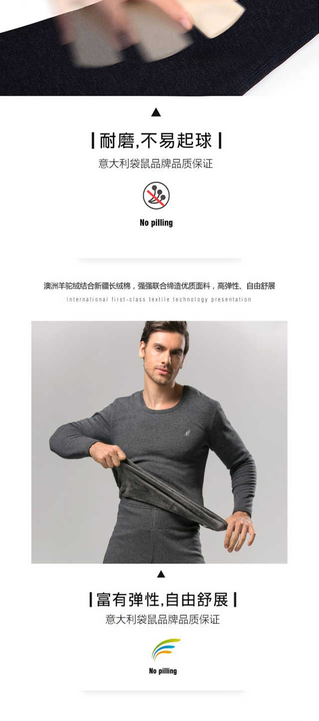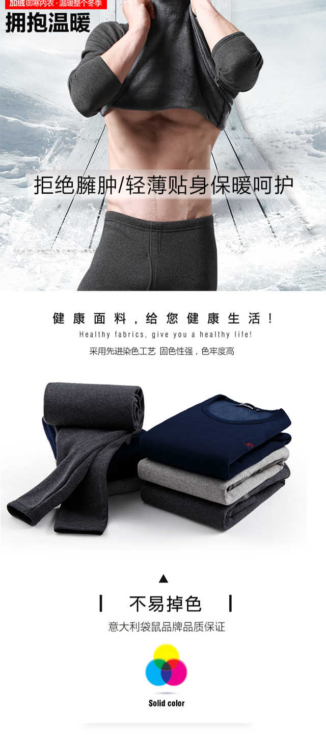 【加绒加厚套装】袋鼠男士保暖内衣套装加绒