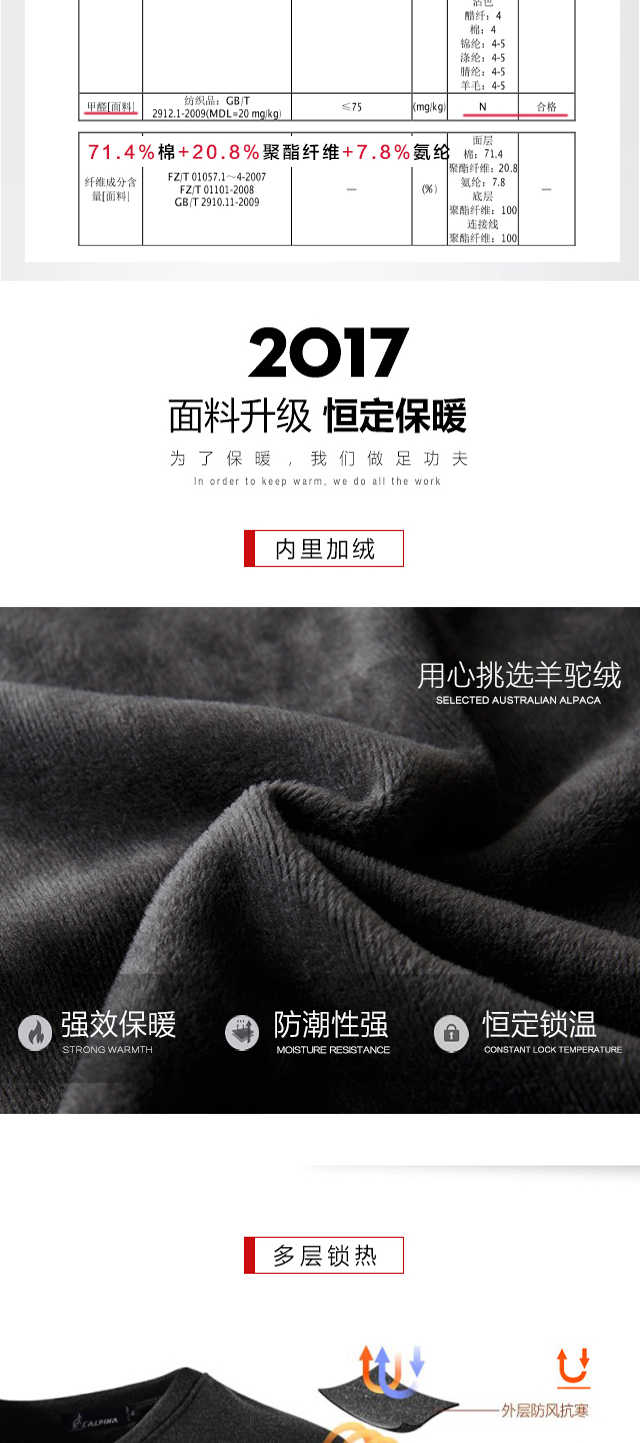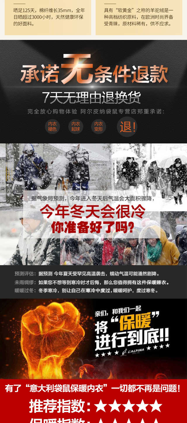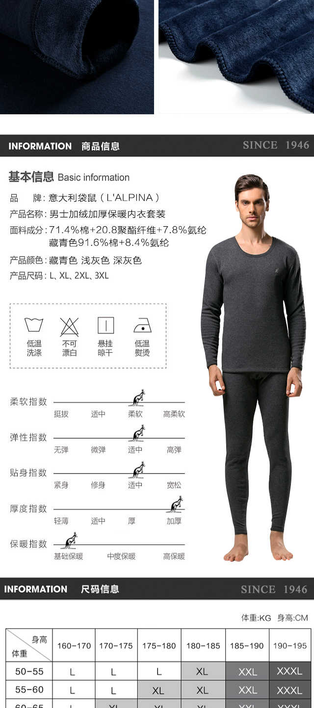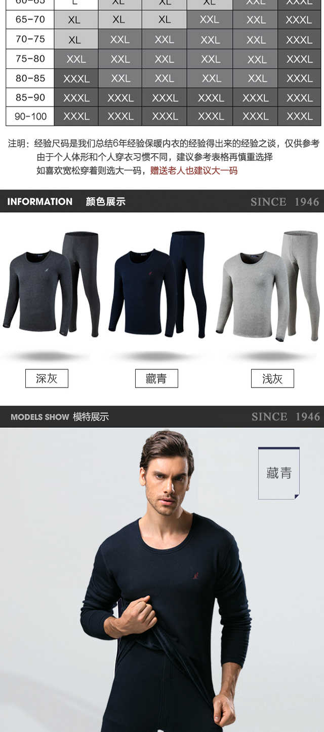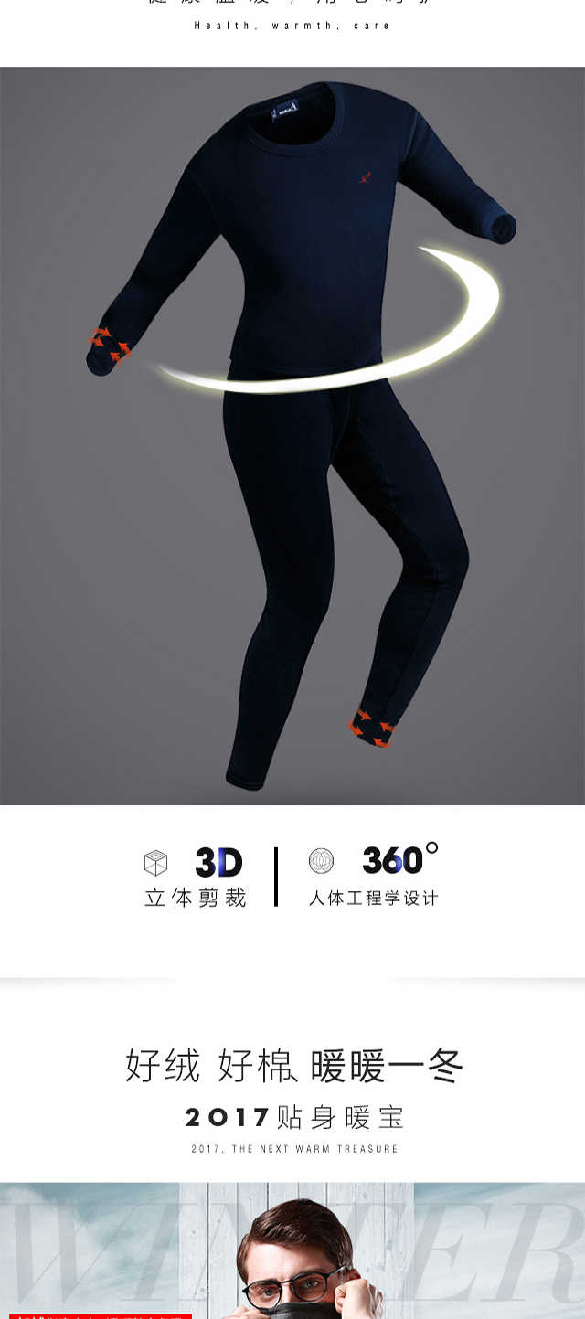 【加绒加厚套装】袋鼠男士保暖内衣套装加绒