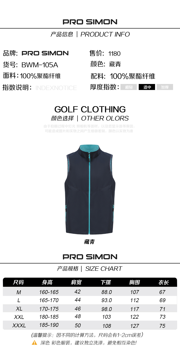BMW-105A (PROSIMON【防风】高尔夫秋冬男款无袖简约风梭织外套)
