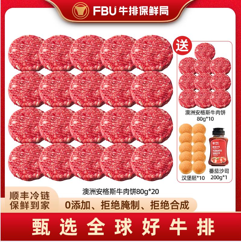 【下单送】送牛肉饼80g*10片+10对汉堡胚+番茄沙司200g