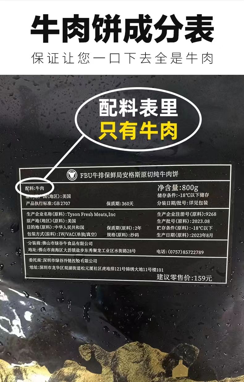 【下单送超多赠品】安格斯纯牛肉饼丨牛肉饼精选牛大腿肉,谷物饲养,配料表只有牛肉,升级1:9肥瘦配比,香醇可口,肉质松软不柴。⭐️顺丰陆运