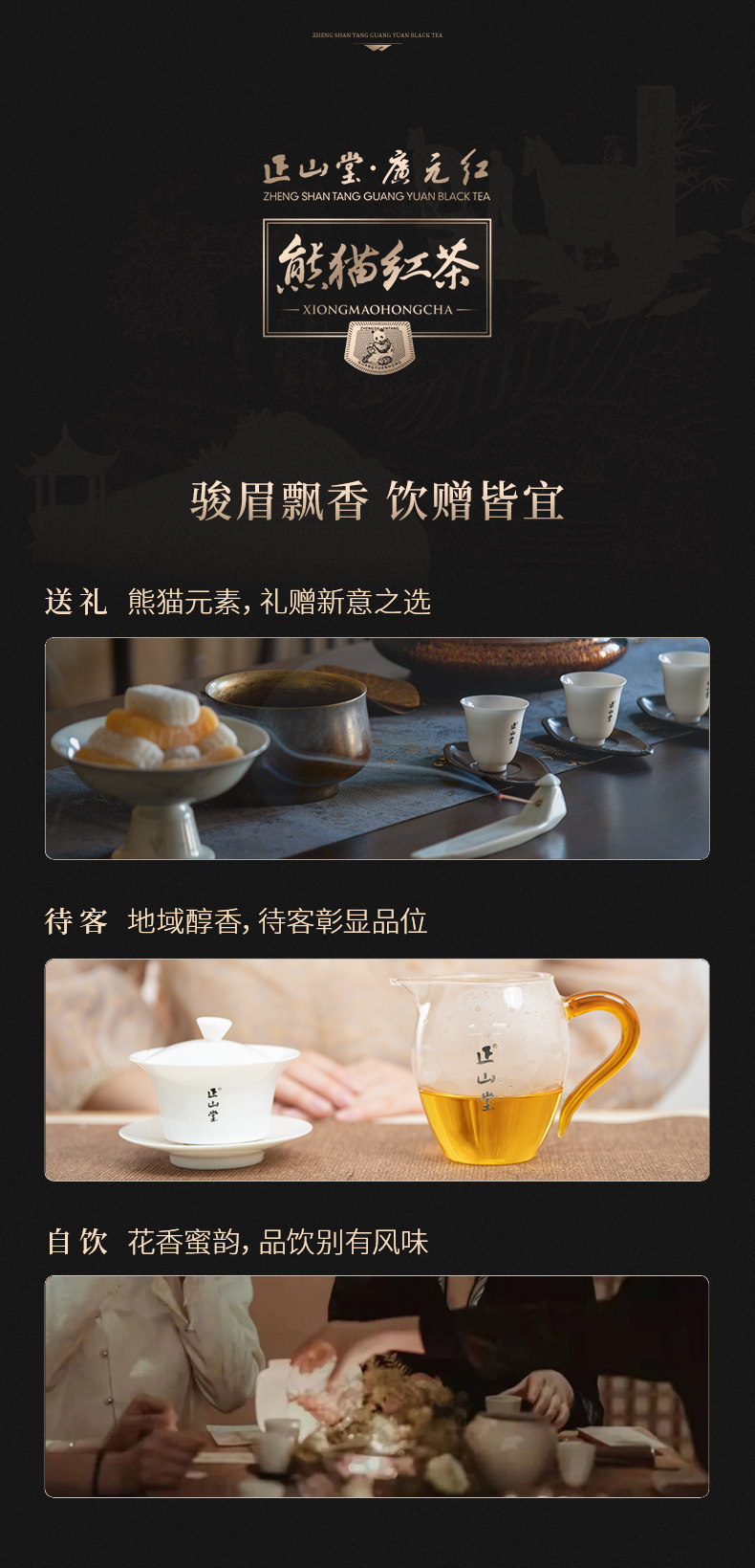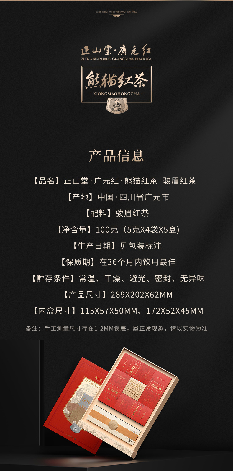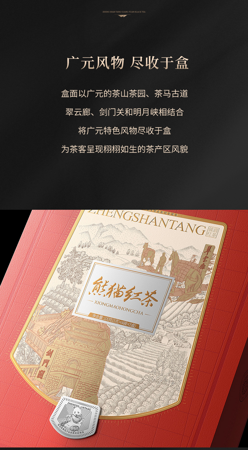 正山堂广元红 骏眉中国秘境熊猫红茶礼盒装 四川特级红茶正宗100g