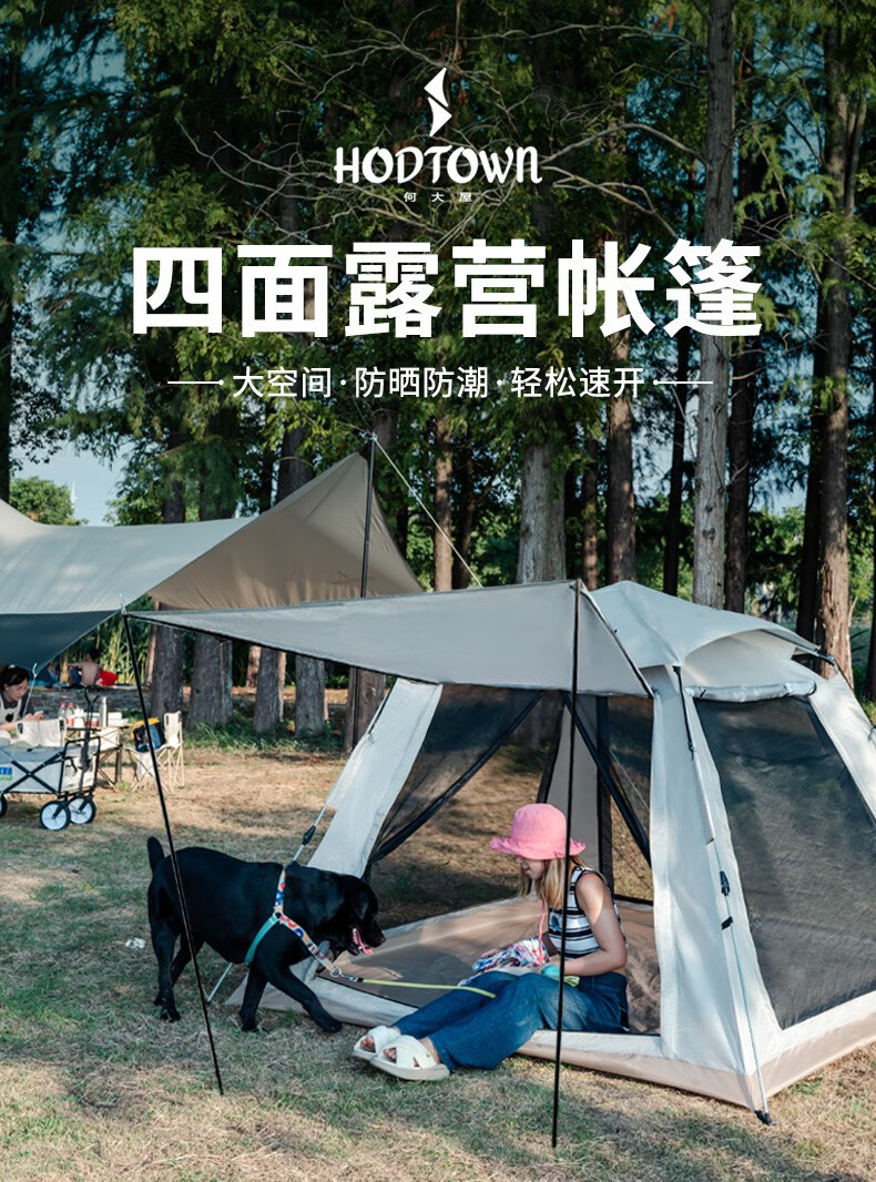 商品配件:外包装袋+地钉*10+调节扣*6+防风绳*6+防雨布*1+支撑杆*6节2根