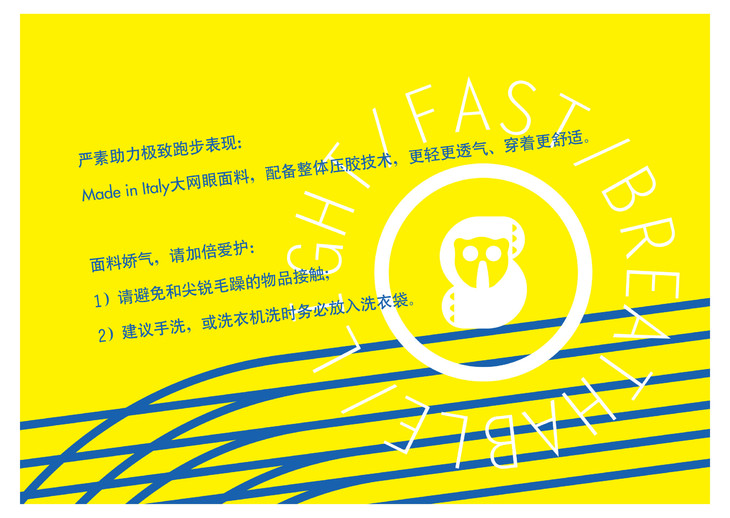 从意大利进口的网状面料,具有卓越的透气、排汗性能,超轻。