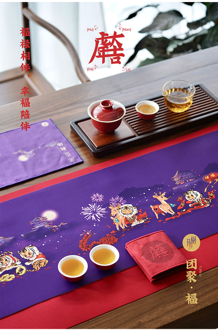 虎年防水防滑茶席茶具套装禅意轻奢新年中式喜庆桌旗春节送礼布艺