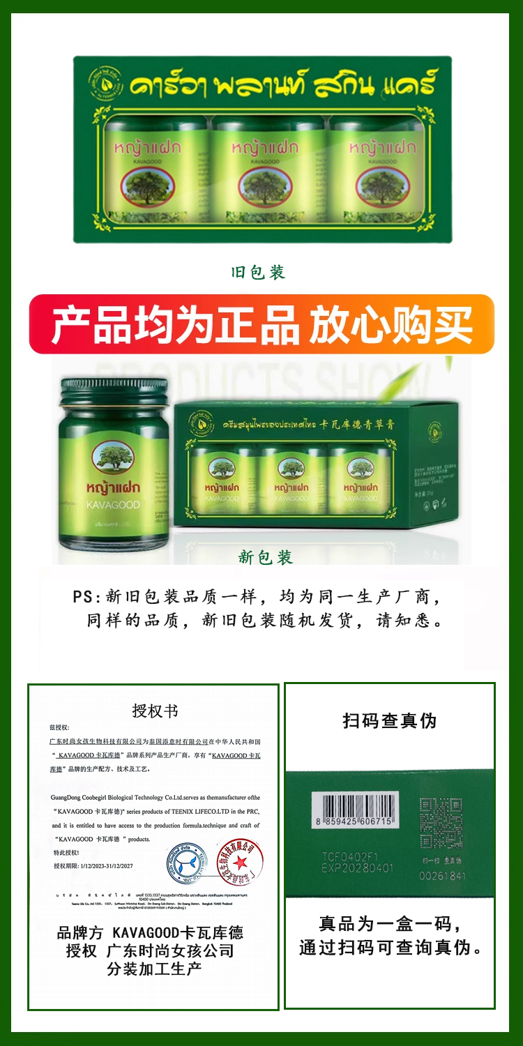 会员福利 泰国品牌 卡瓦库德KAVA卡瓦库德薄荷青草膏15g*3 套盒装