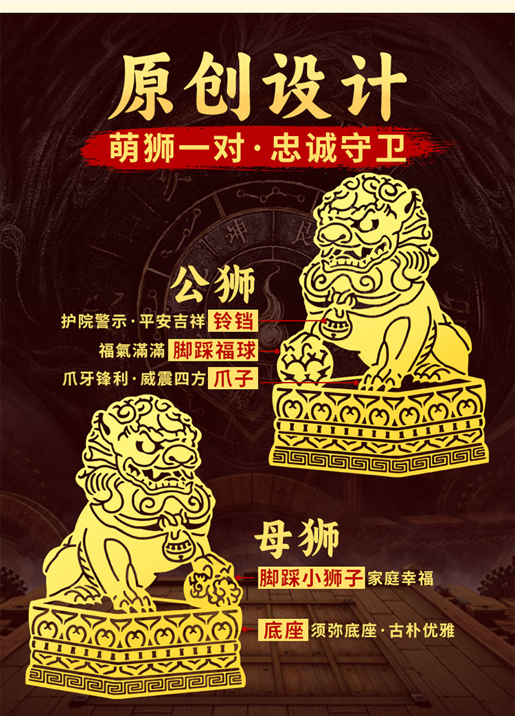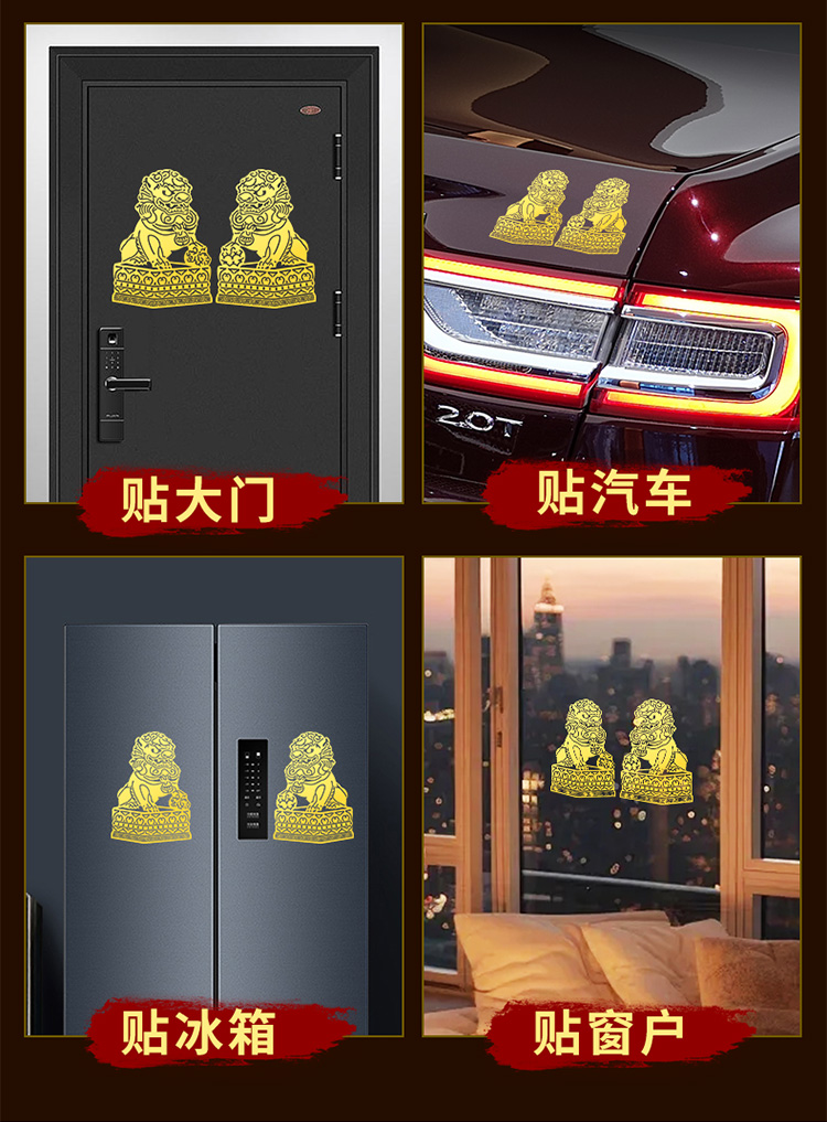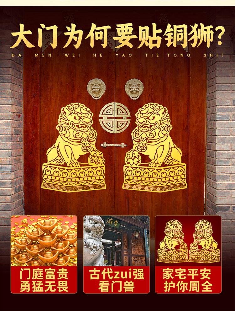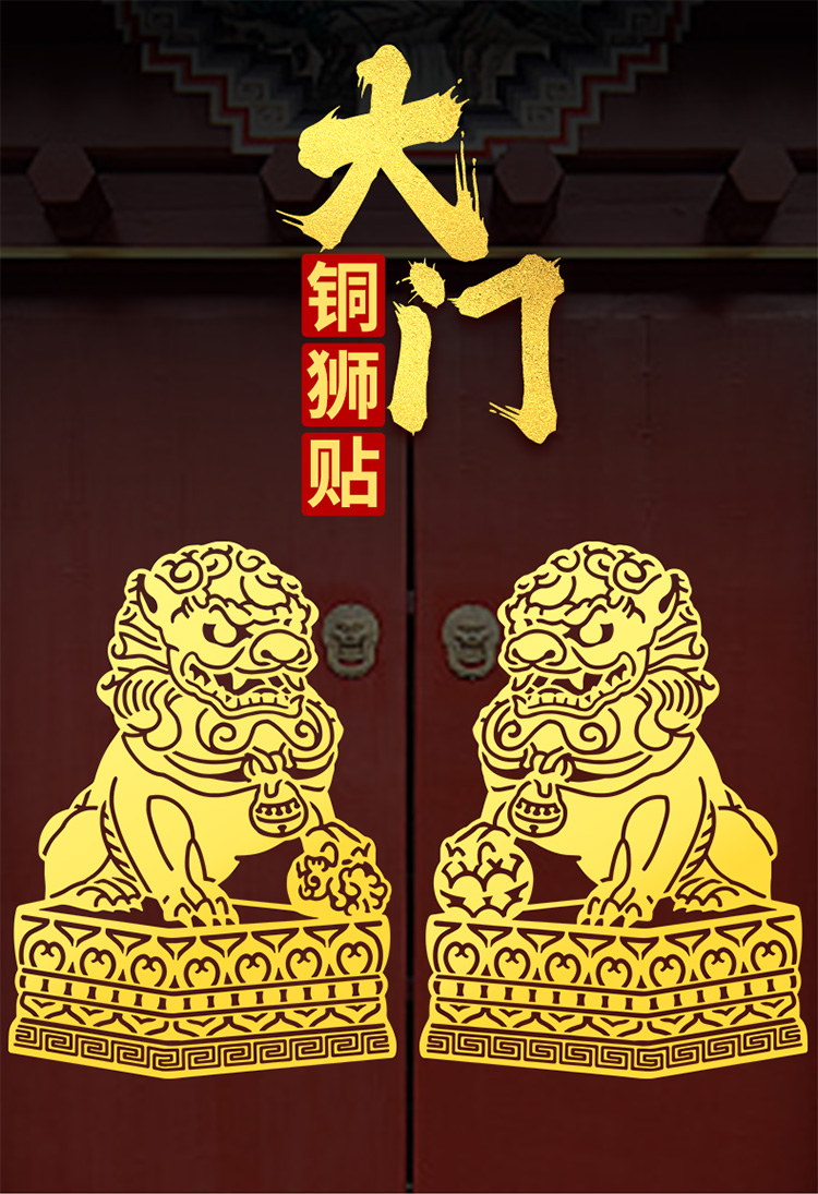 大门狮子金属贴