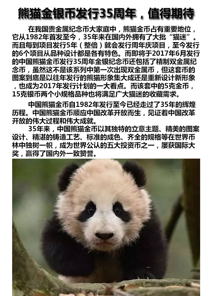 2017年熊猫金币发行35周年金银币 5克金币+15克银币 单银币