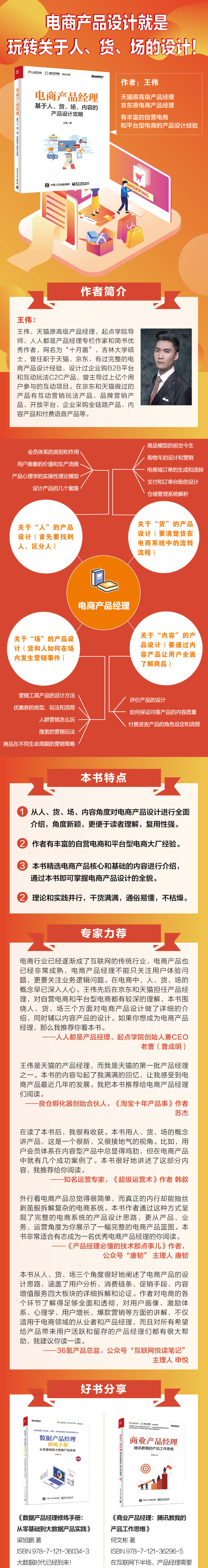 本书从"人”"货”"场”"内容”方面详细地阐述了电商各个环节的流转和应用,同时,也讲述了电商产品经理的核心能力。为了让读者能够更好地理解和吸收电商方面的精华,本书在每章中都会讲解一些工作过程中通俗易懂的例子。与以往产品经理方法论的书不同,本书更侧重于产品设计的方案框架。本书所述的产品方案都是大公司里相对落地的方案,读者实际上可以直接拿来应用到自己的业务中。