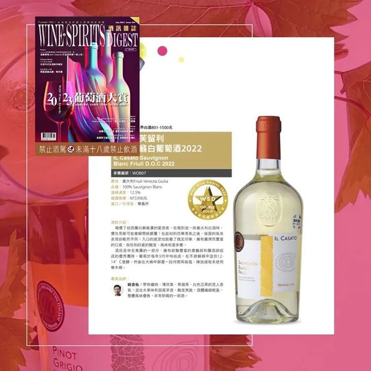 并且,这支Il Casato长相思同样荣获Wine & Spirits双金奖。
