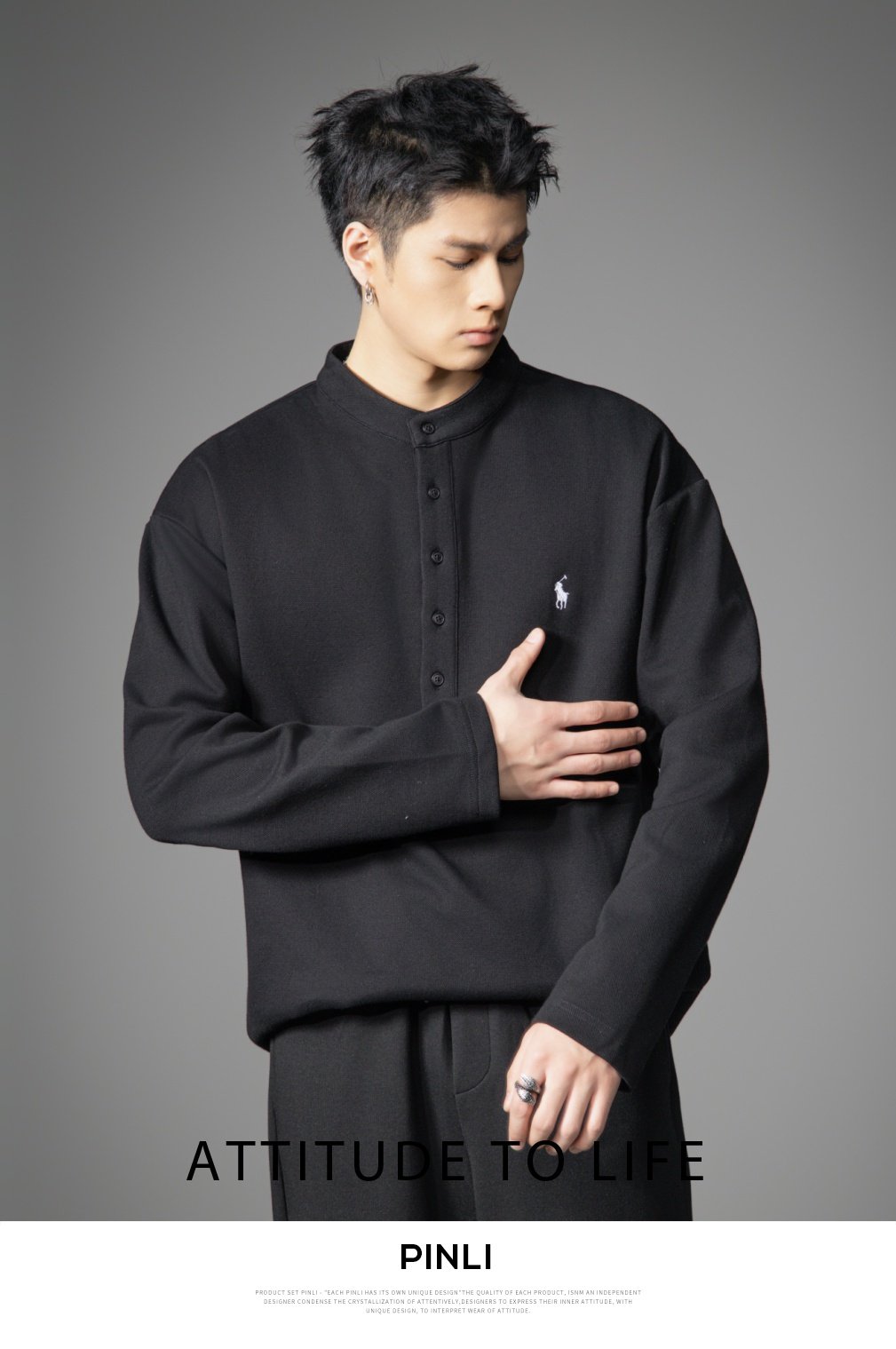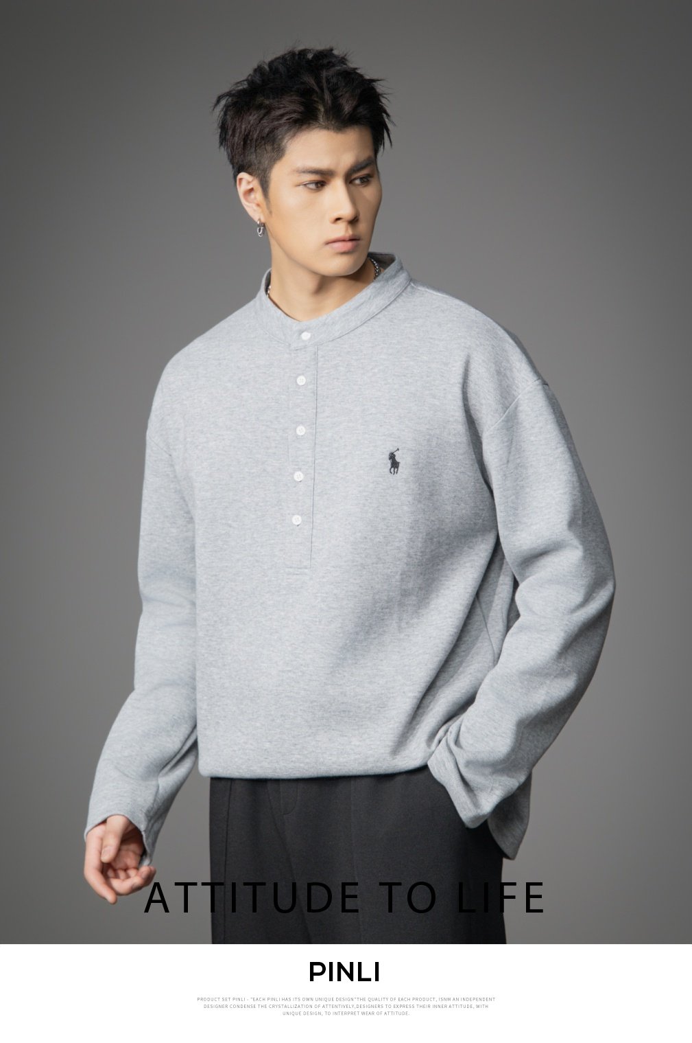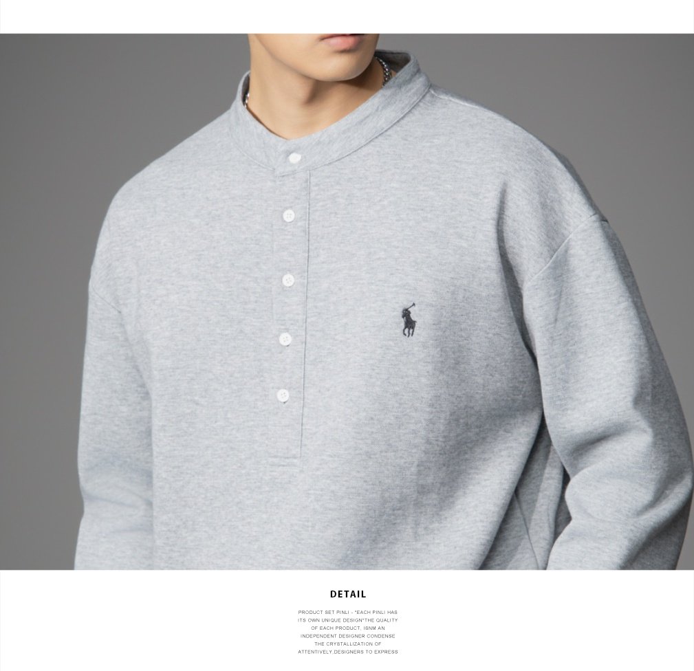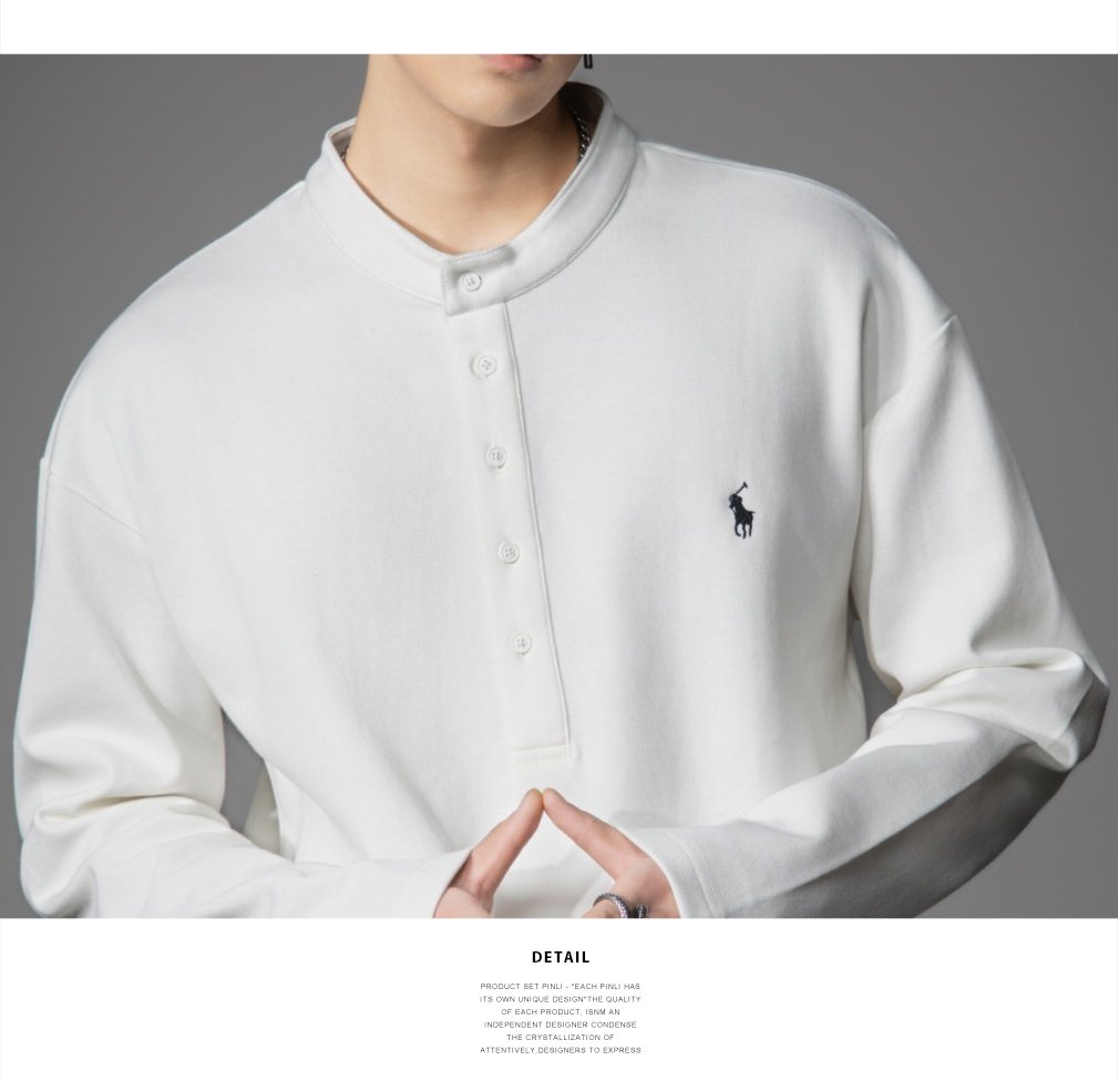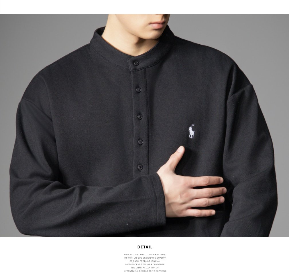 PINLI品立2026春季新款青年男士宽松立领落肩长袖T恤打底上衣潮牌GD262111006