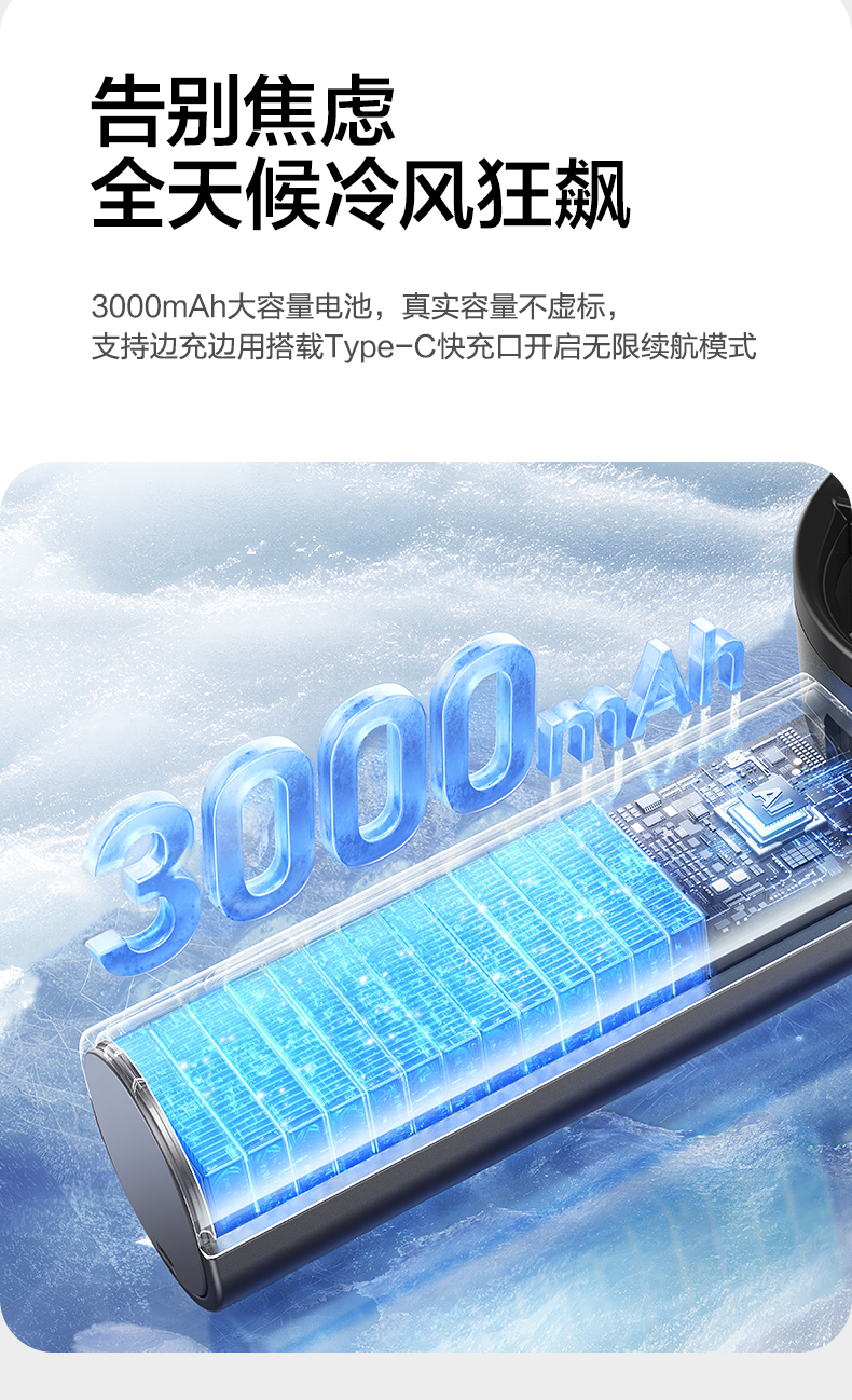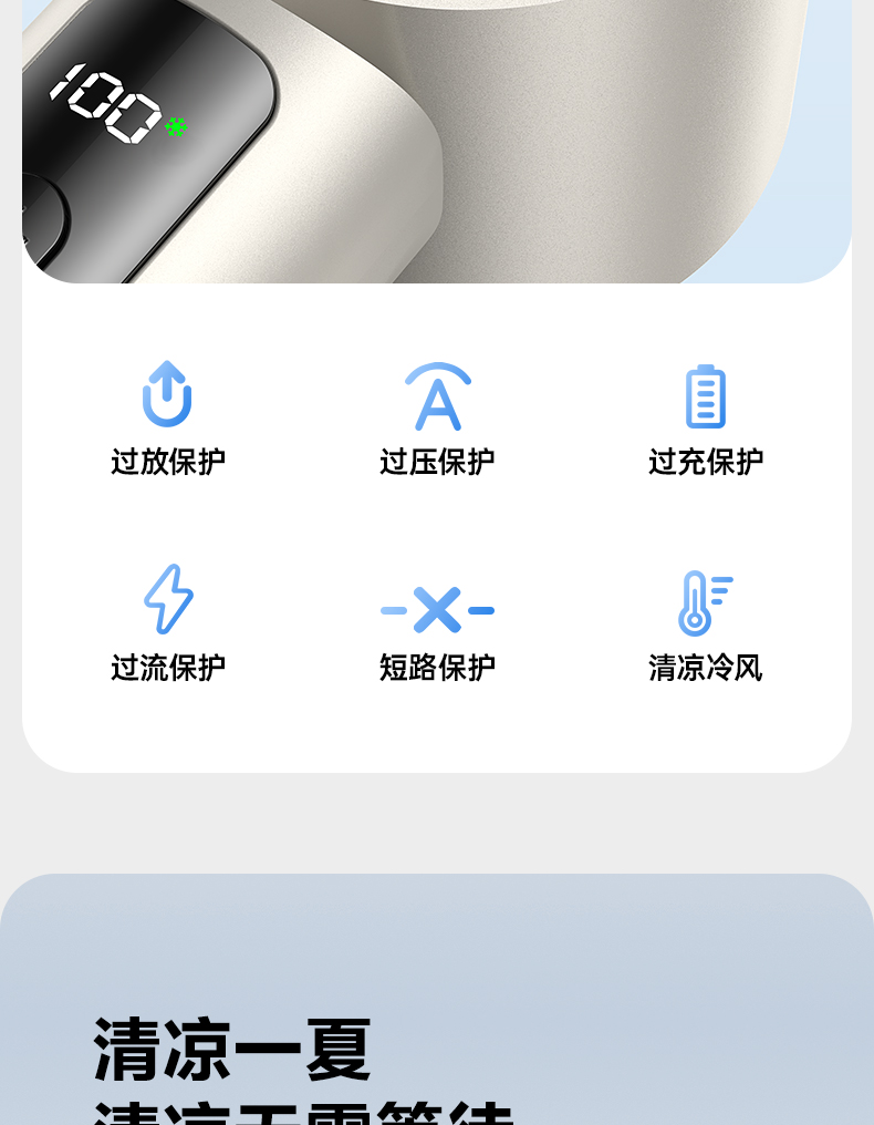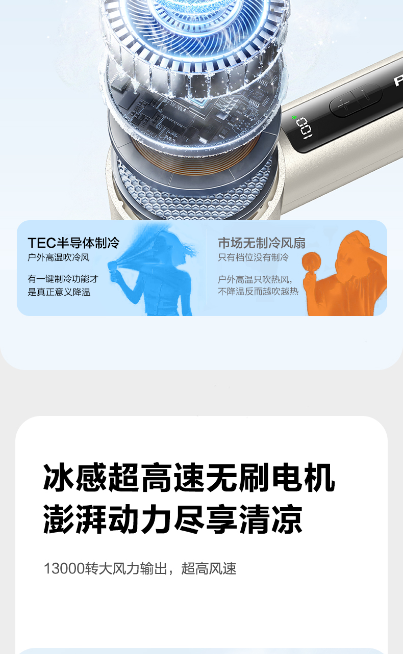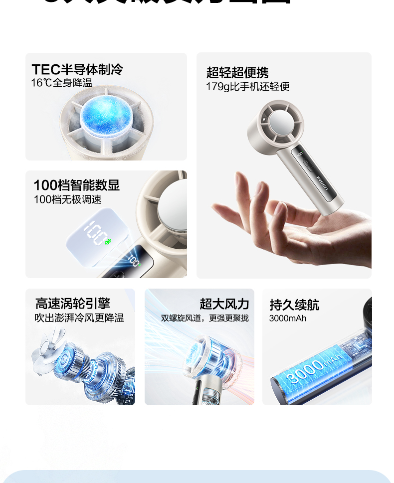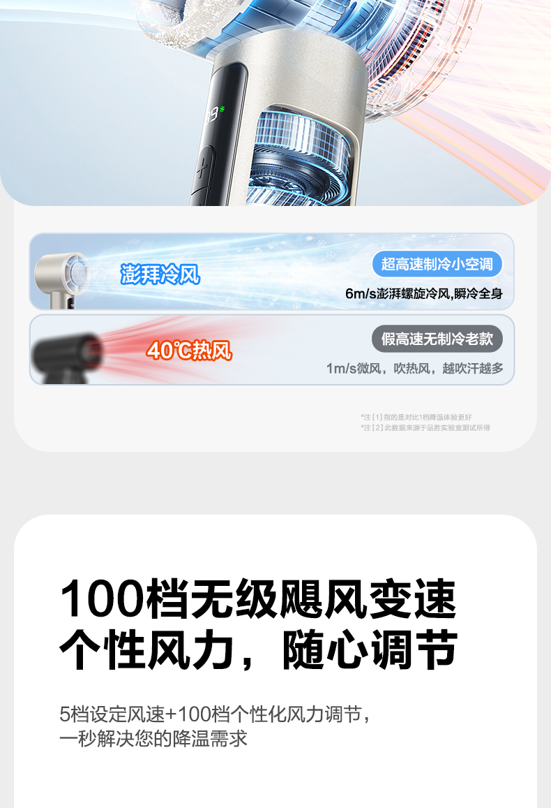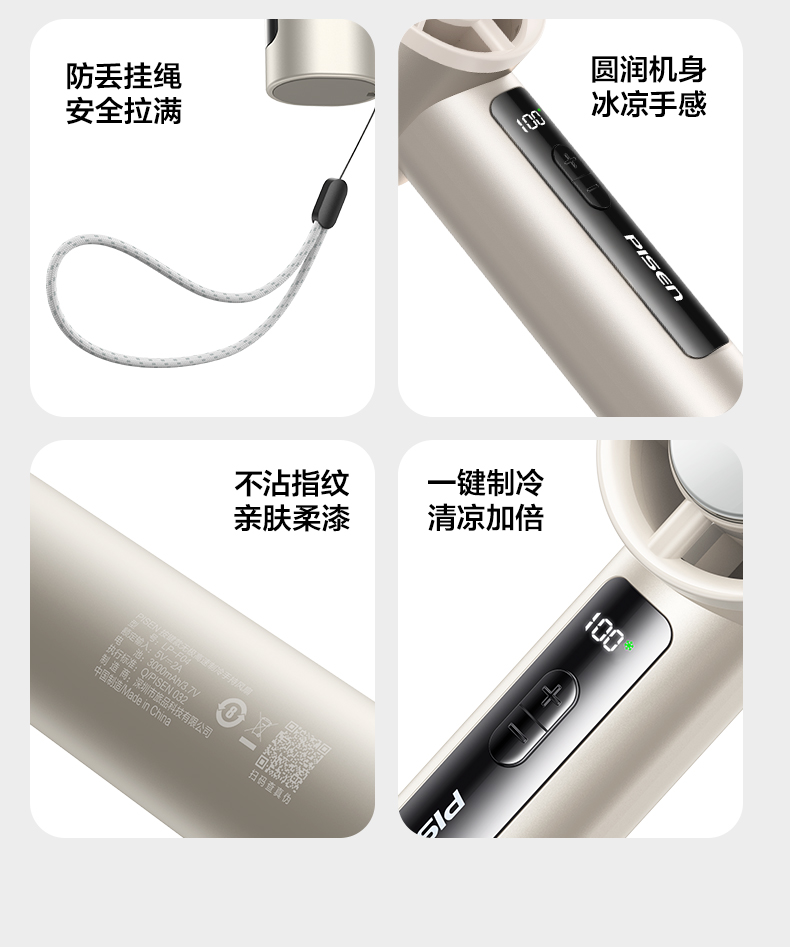 品胜 按键款无极高速制冷手持风扇降温神器办公室学生宿舍户外 超长续航 静音/便携