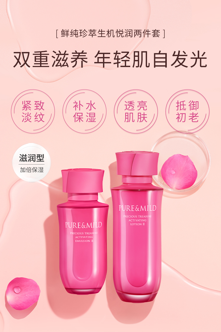 【官方授权】泊美鲜纯珍萃生机悦润水乳2件套