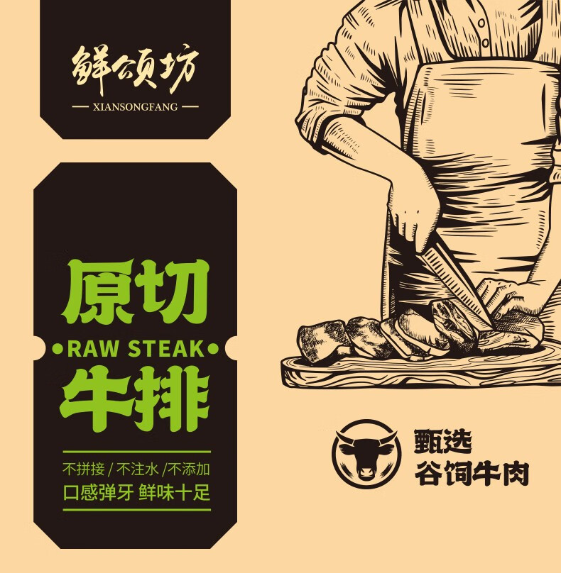 鲜颂坊 原切牛排898型2070g/箱