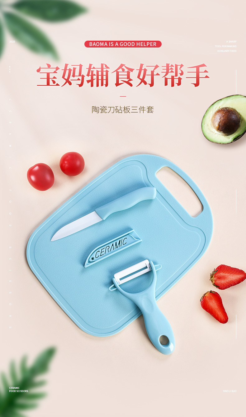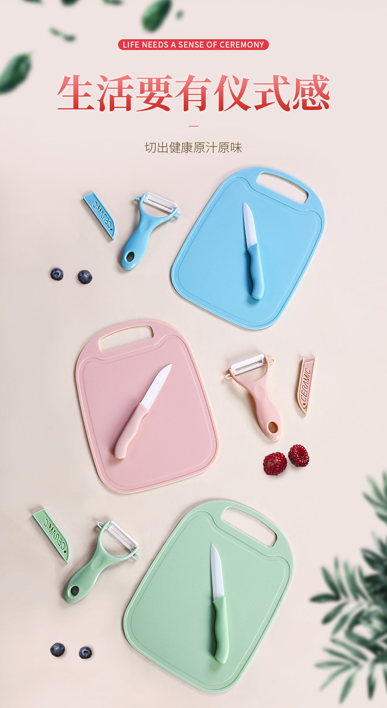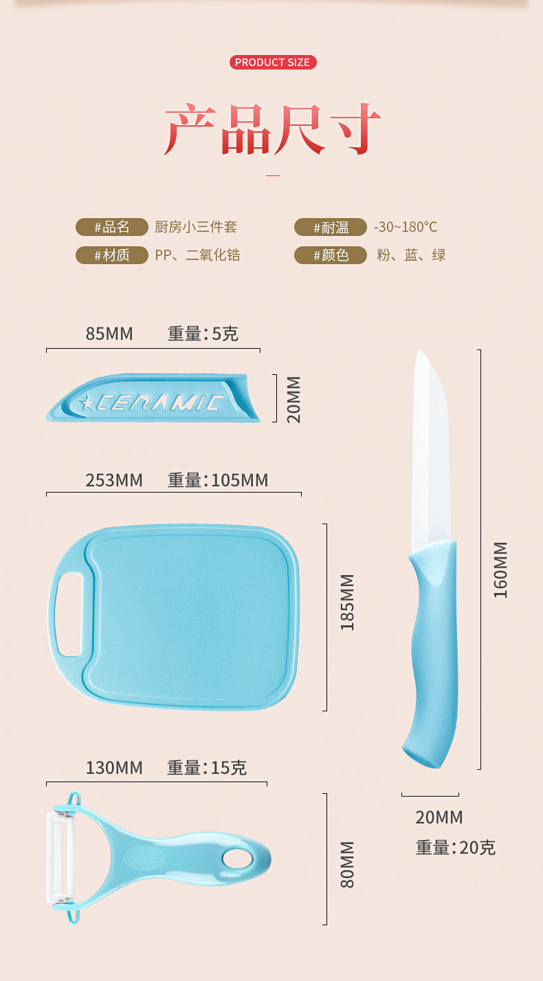 【陶瓷粉色三件套】宝宝辅食水果刀组合削皮刀加厚菜板瓜刨宝宝辅食陶瓷刀/套