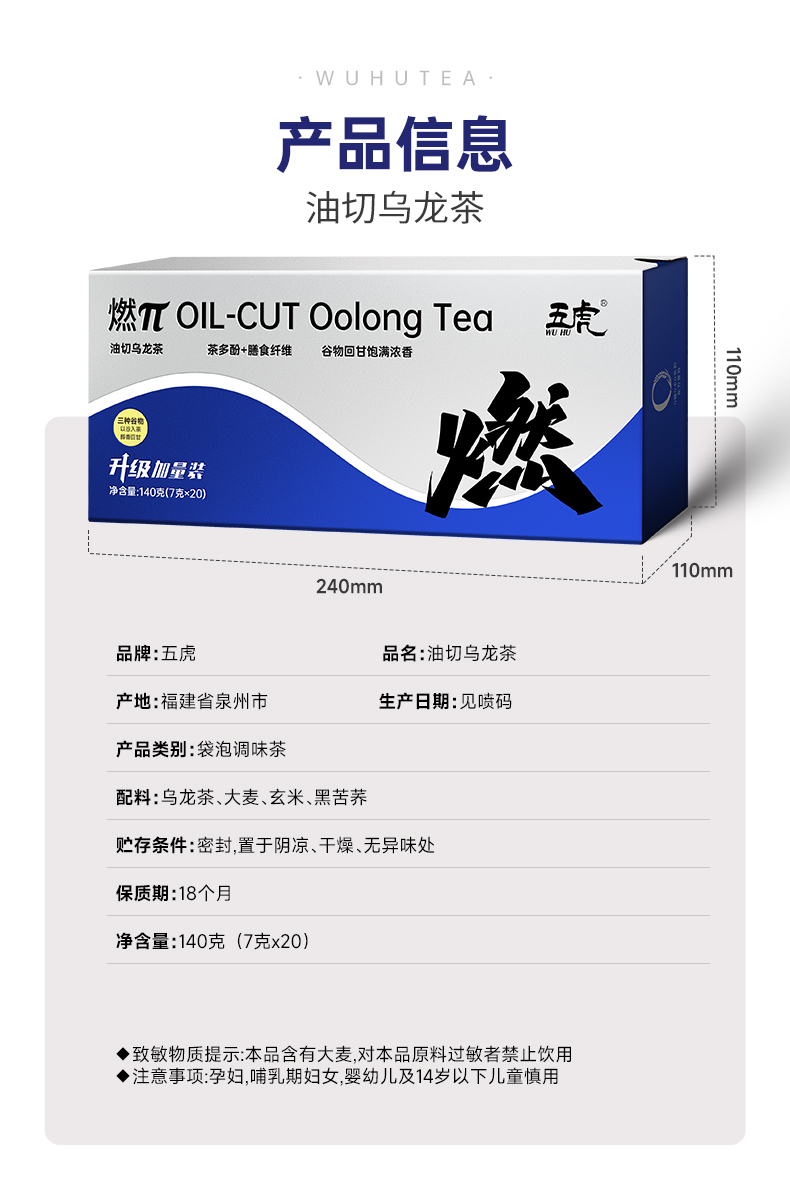 【年货茶礼】茶叶 油切乌龙茶 黑乌龙 大麦茶玄米 黑苦荞茶 茶包 茶饮 五虎 100g