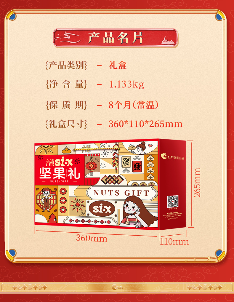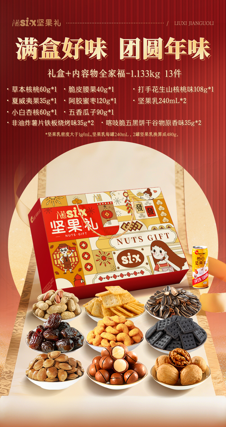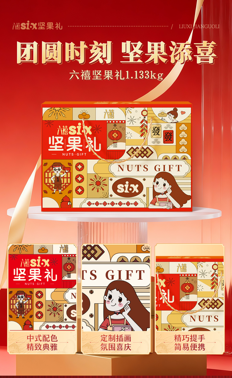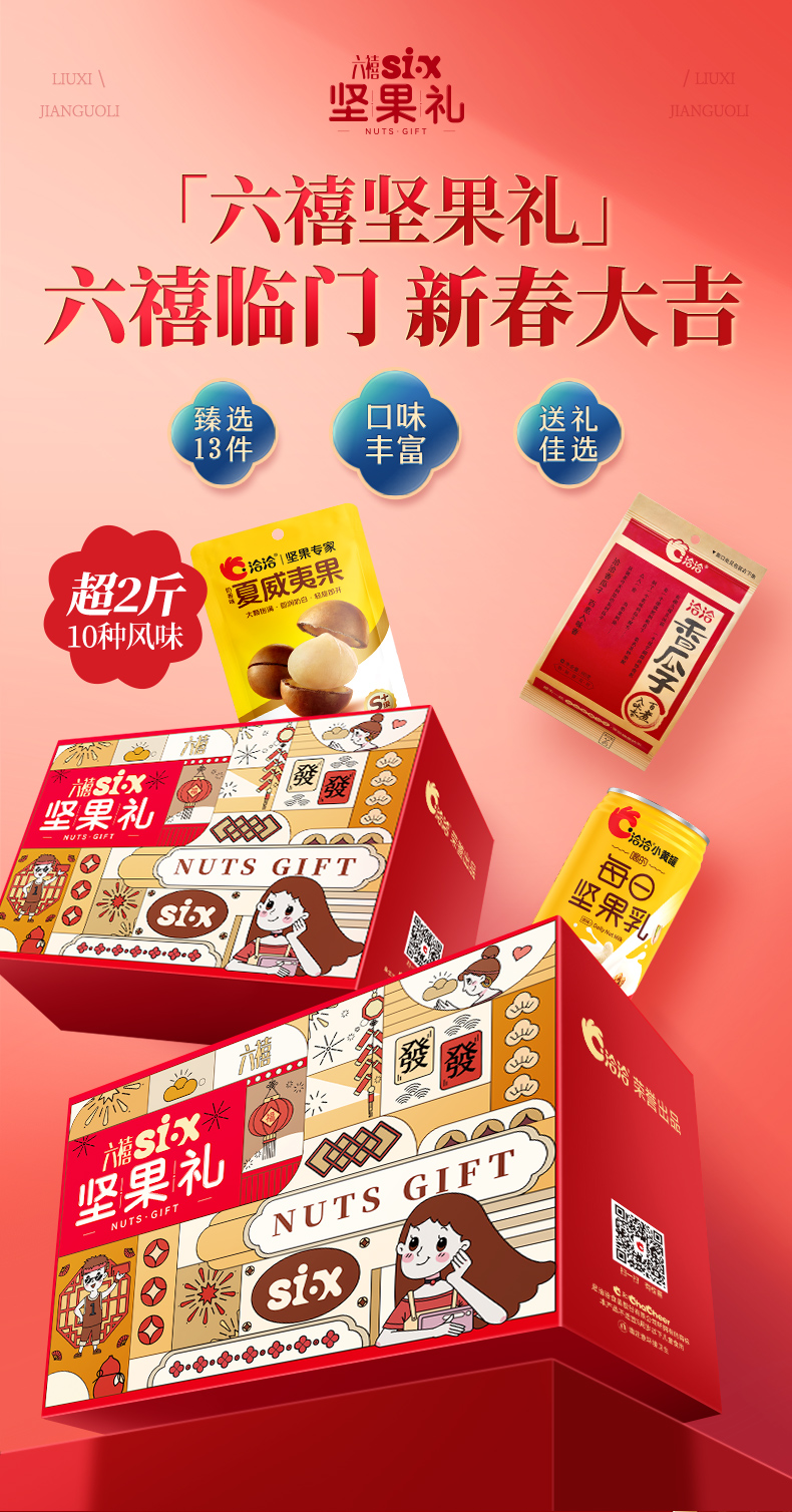 【六禧临门 新春大吉】洽洽六禧坚果礼定制礼盒 1.133kg 年货礼盒年货节必备
