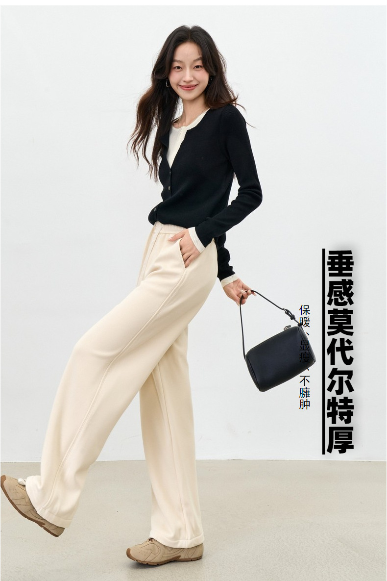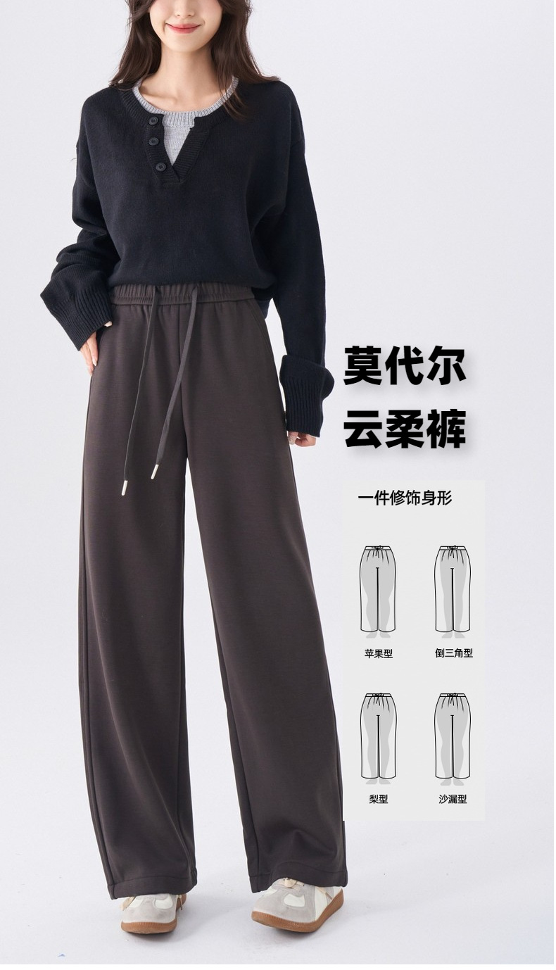 【双十一 特厚莫代尔】2025新款莫代尔加绒提花云柔大码直筒阔腿垂感休闲裤子!