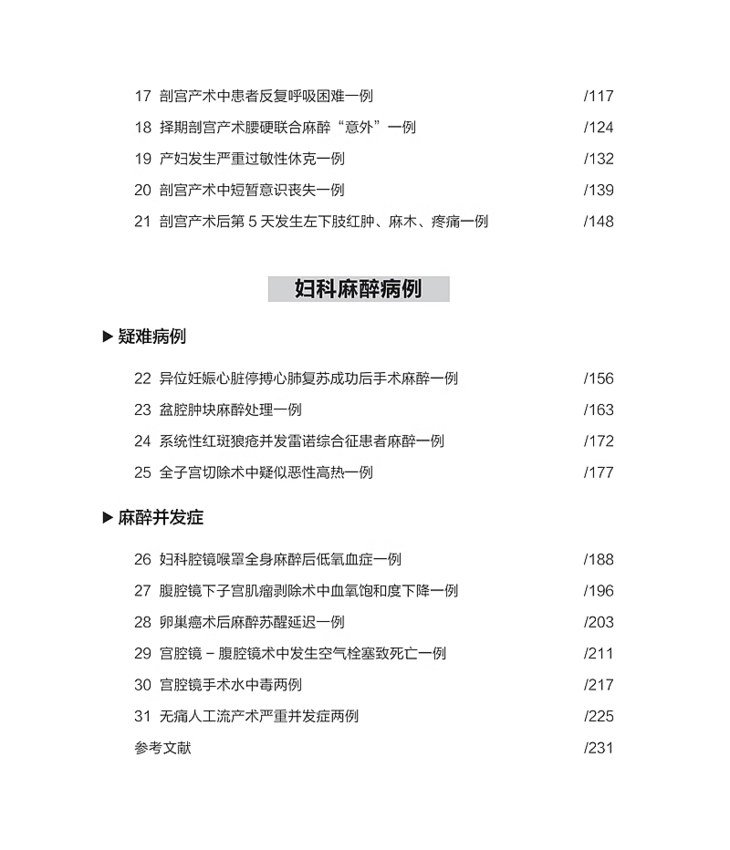 涵盖病态肥胖产妇、妊高征产妇合并先心病和左心衰竭等各种病理产科的麻醉管理。涉及异位妊娠心脏停搏心肺复苏成功后、系统性红斑狼疮并发雷诺综合征等妇科疑难重症的麻醉管理,解析分娩镇痛后顽固性头痛、腹腔镜术中发生空气栓塞等各种妇产科并发症发生的原因、处理方案及可能的预后等。