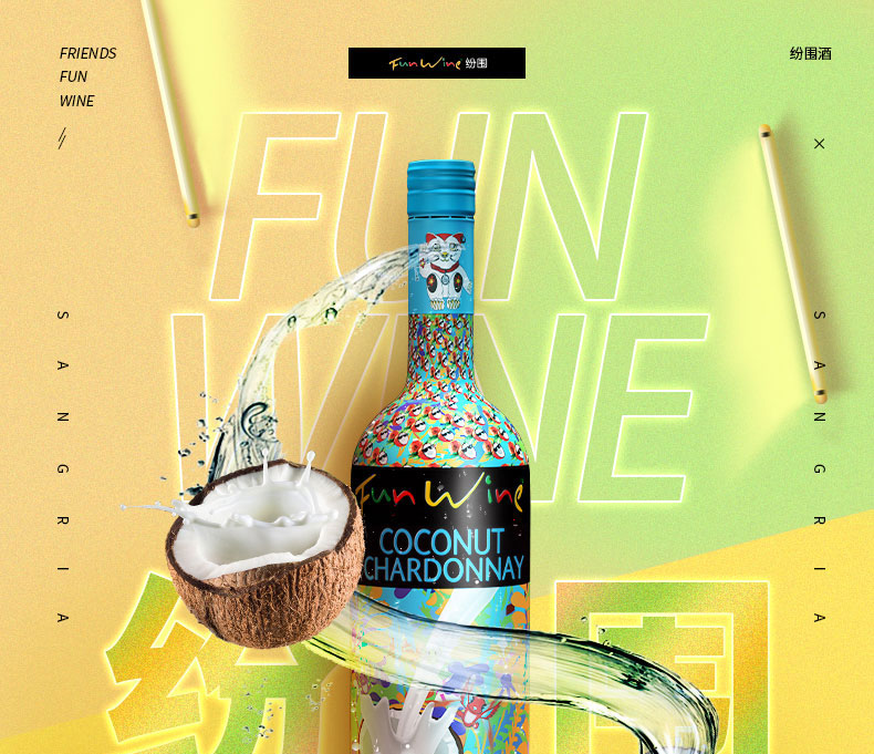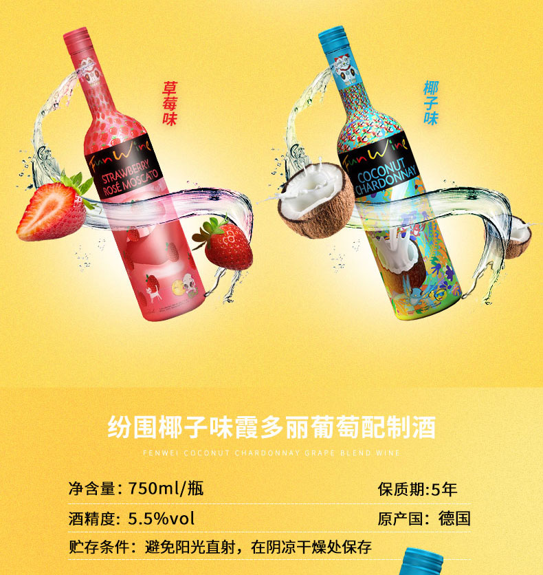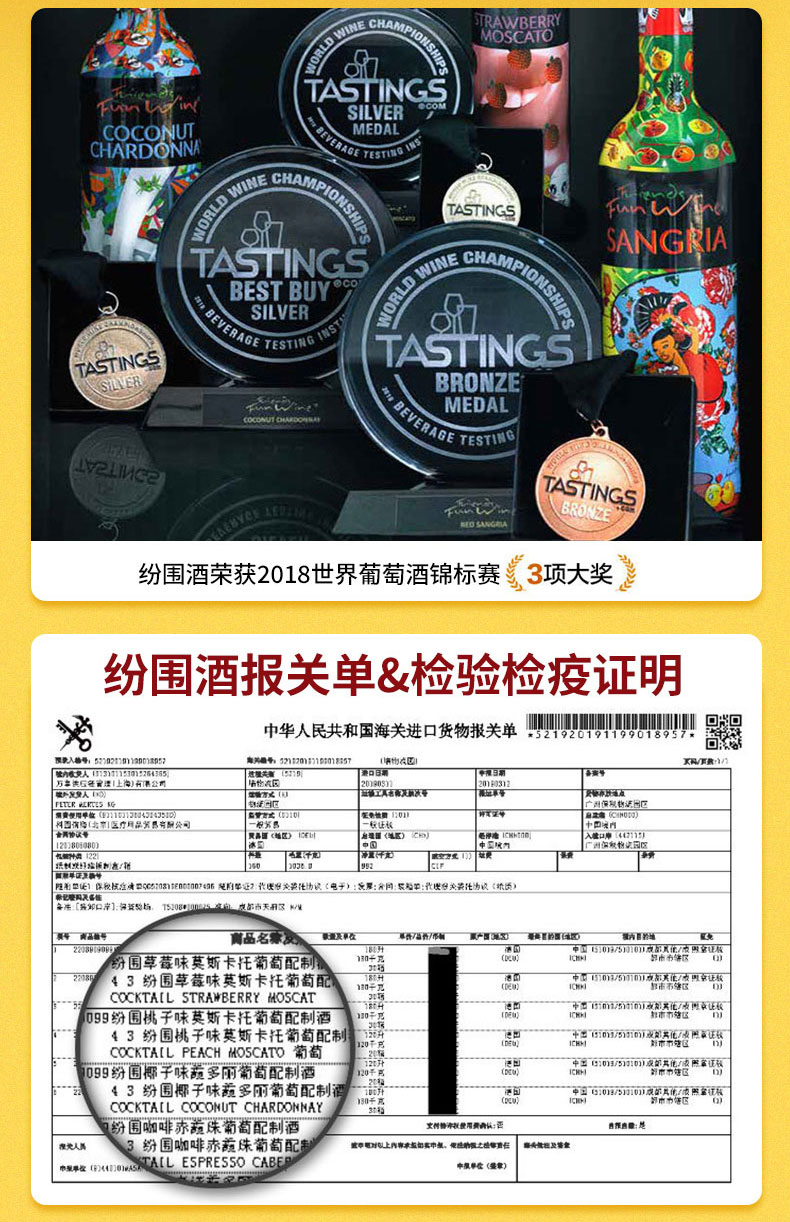 【买一送一】美国迈阿密funwine纷围草莓味莫斯卡托葡萄汽酒|纷围椰子味霞多丽葡萄汽酒|纷围桑格利亚果味汽酒