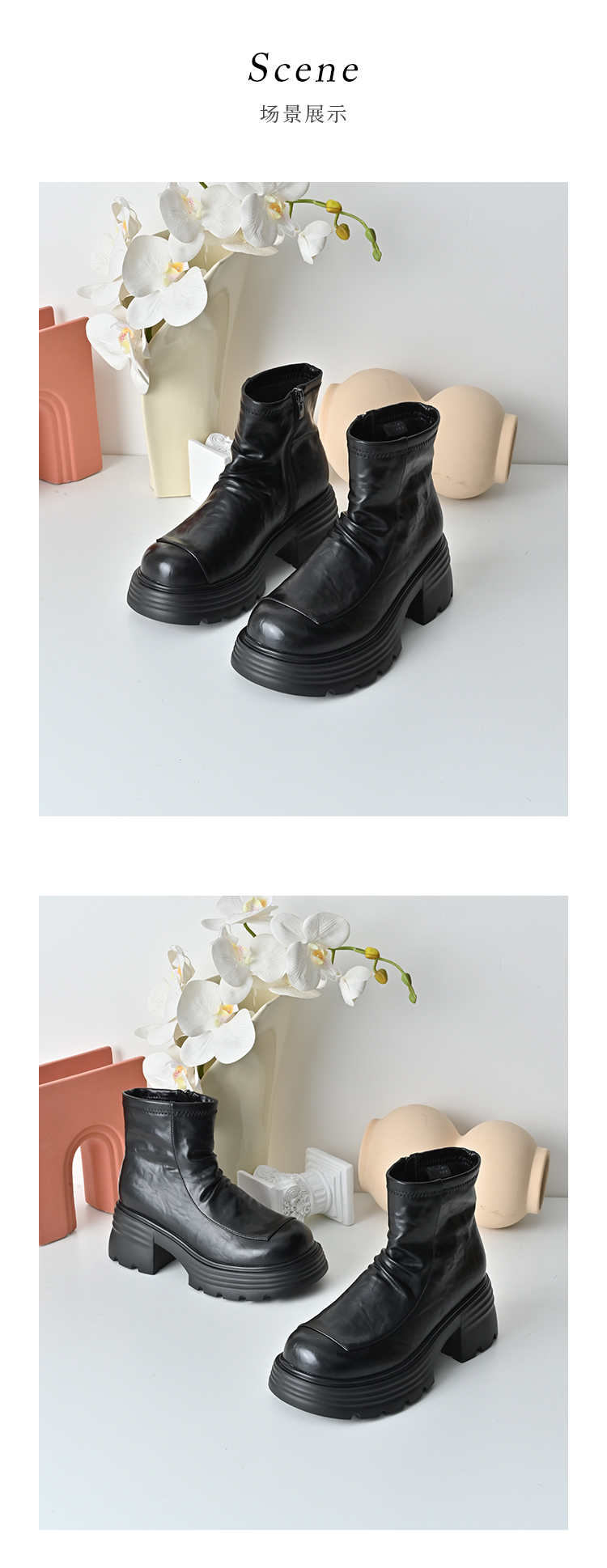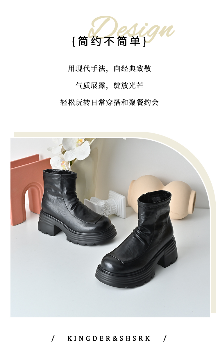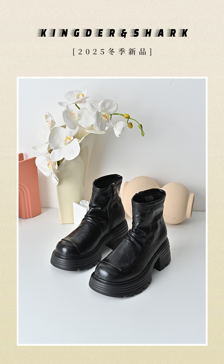 经典鲨2025年冬季专柜新品百搭圆头加绒侧拉链短筒马丁靴女KW230-558021