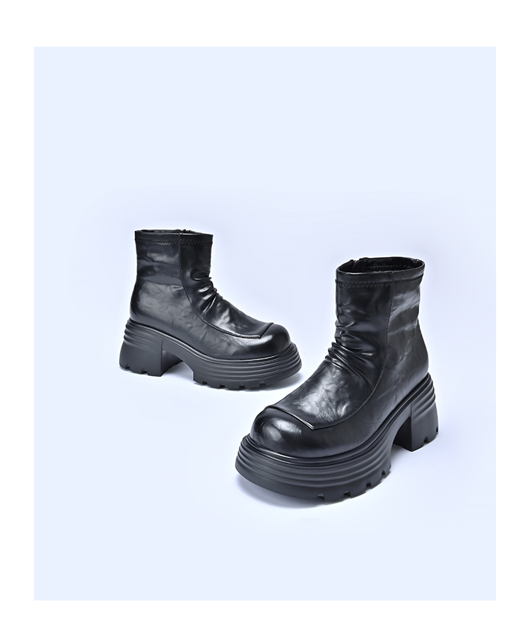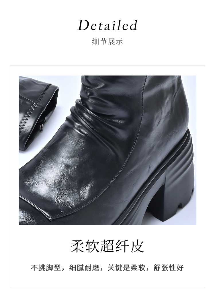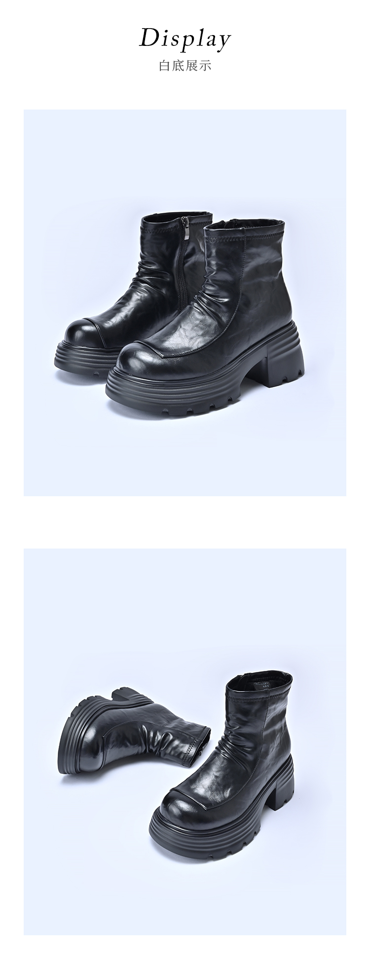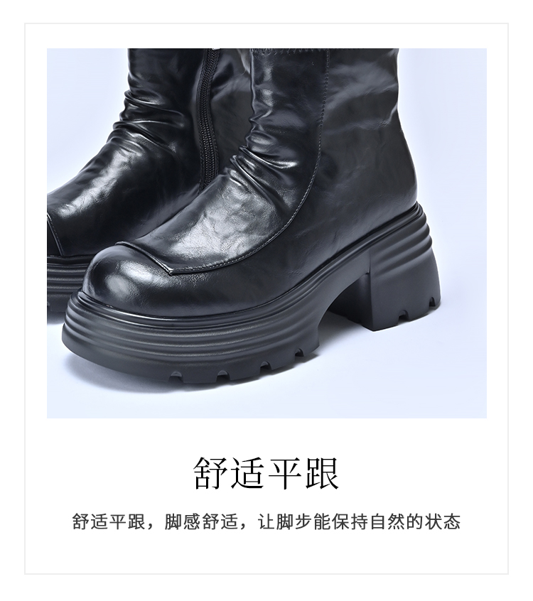 经典鲨2025年冬季专柜新品百搭圆头加绒侧拉链短筒马丁靴女KW230-558021