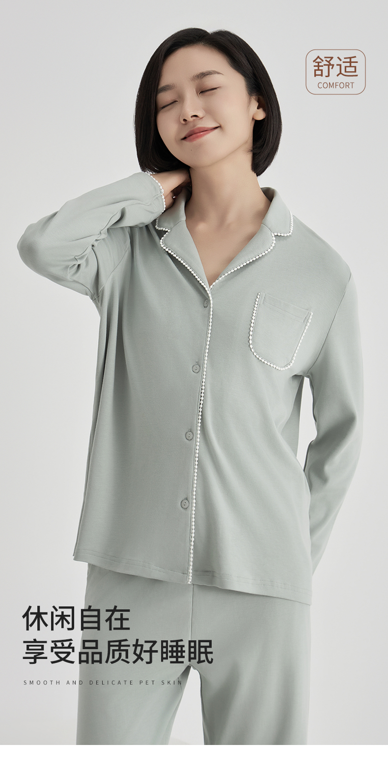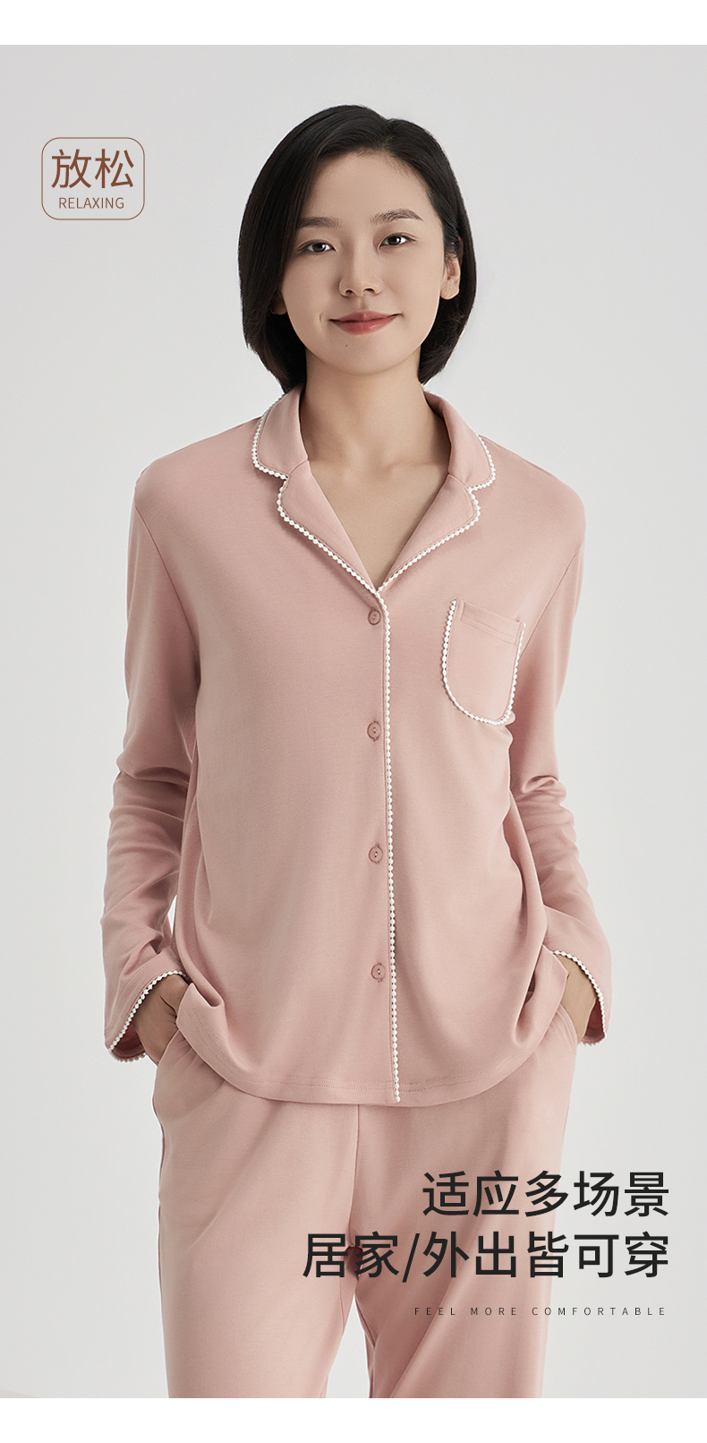 weyo秋冬家居服女舒感棉包边口袋长袖套服50712 商品图0
