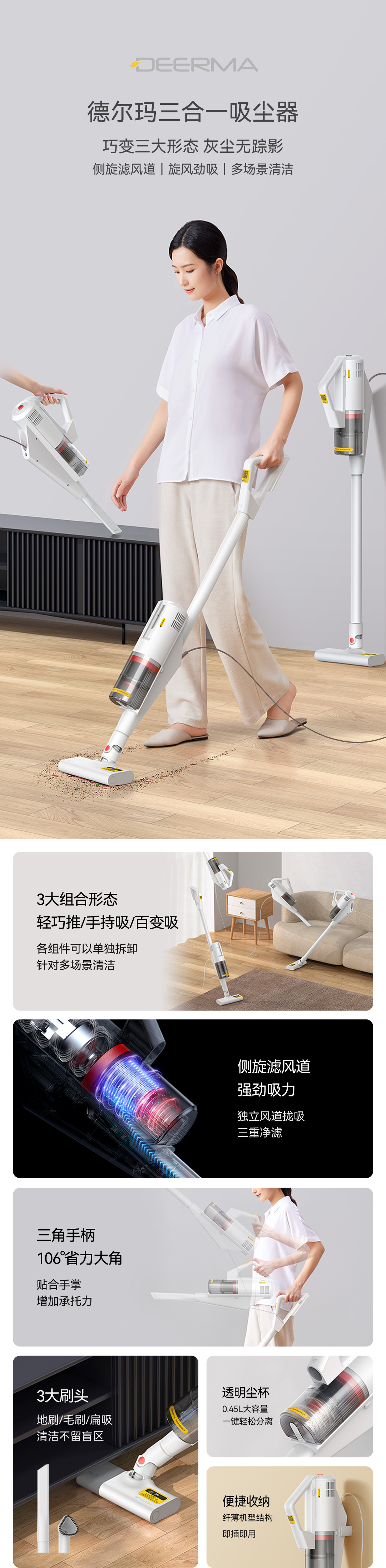 德尔玛吸尘器家用小型大吸力强力大功率手持式多用猫毛地毯吸尘机DX888