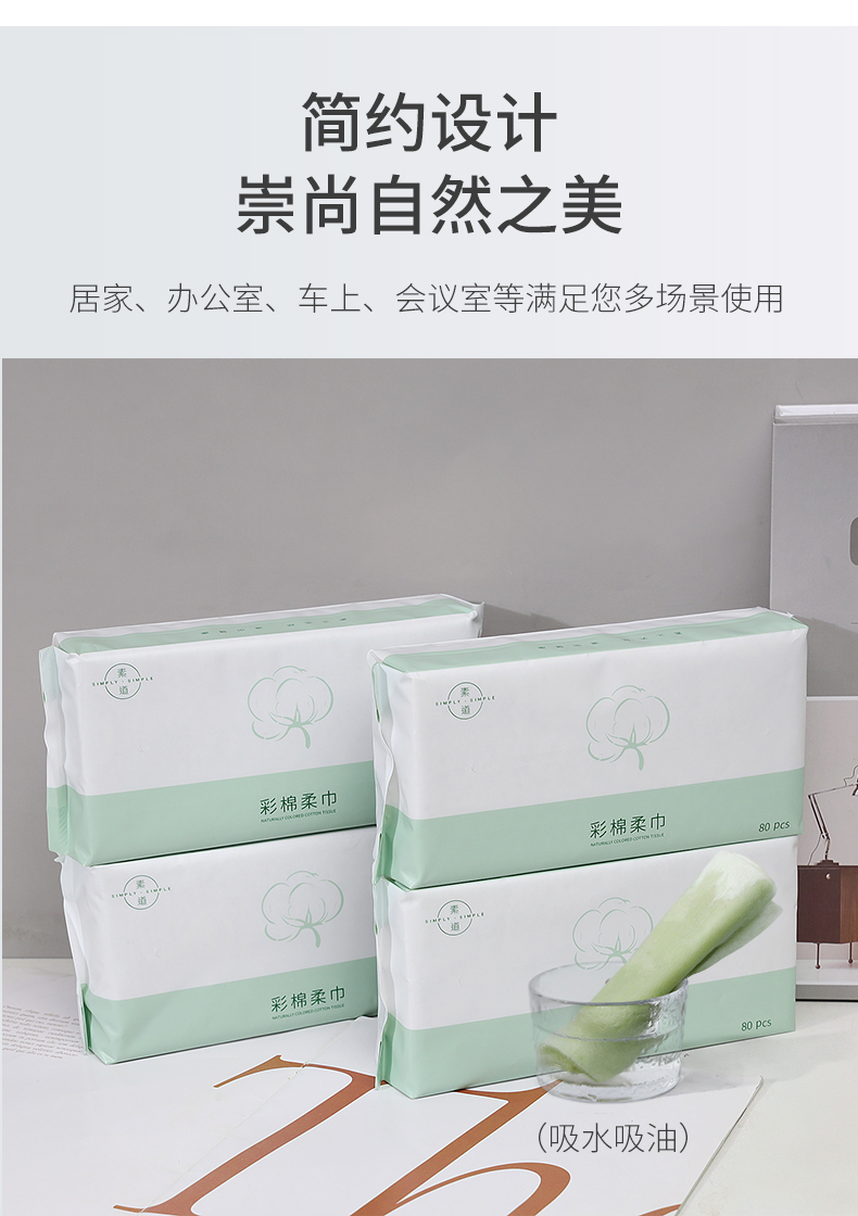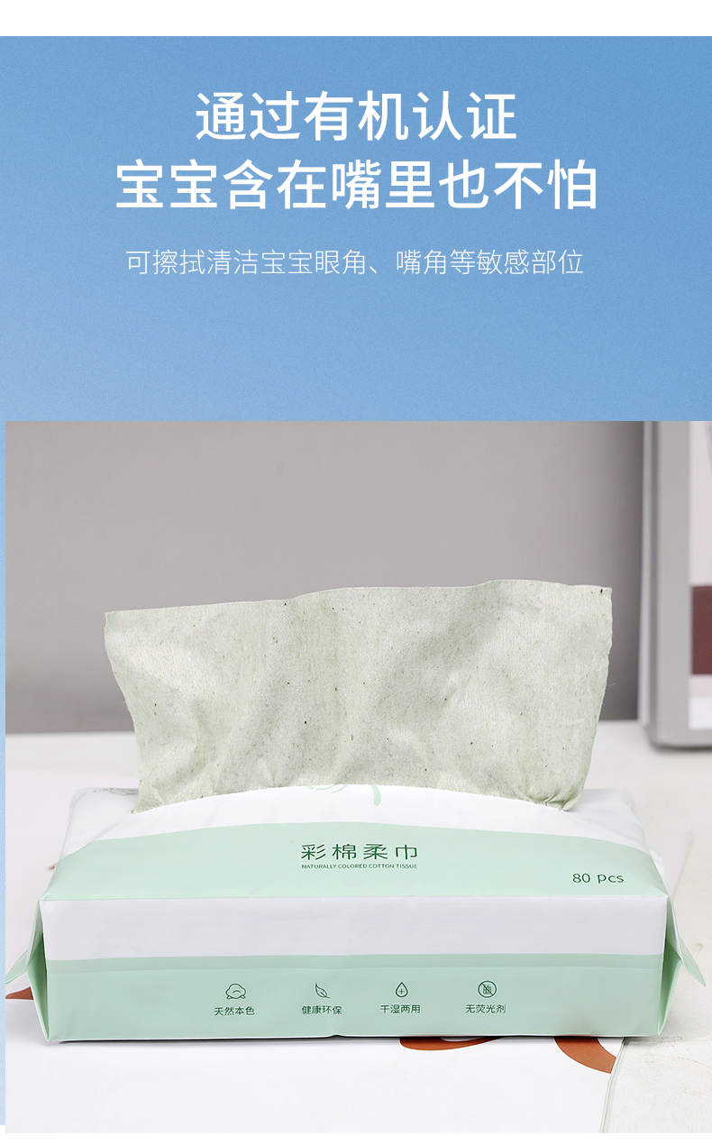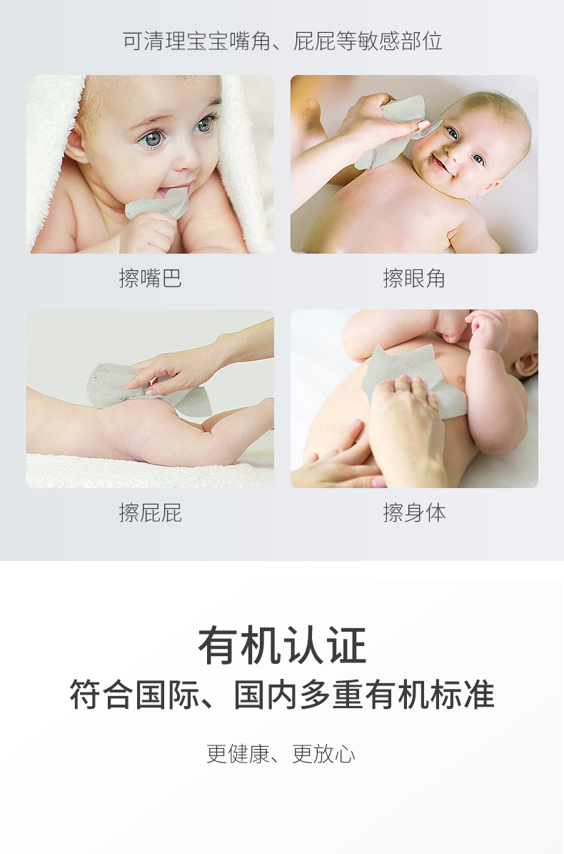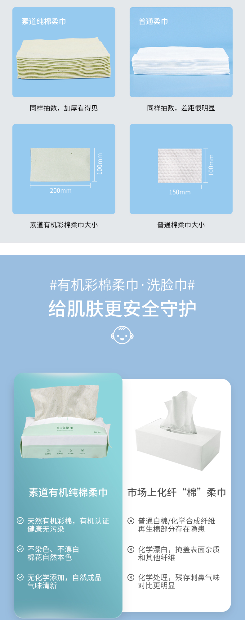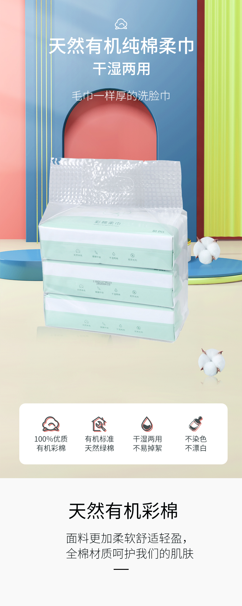 敦煌有机棉素道干湿两用洗脸巾婴儿棉柔巾20*20cm 80抽/包 3包/提