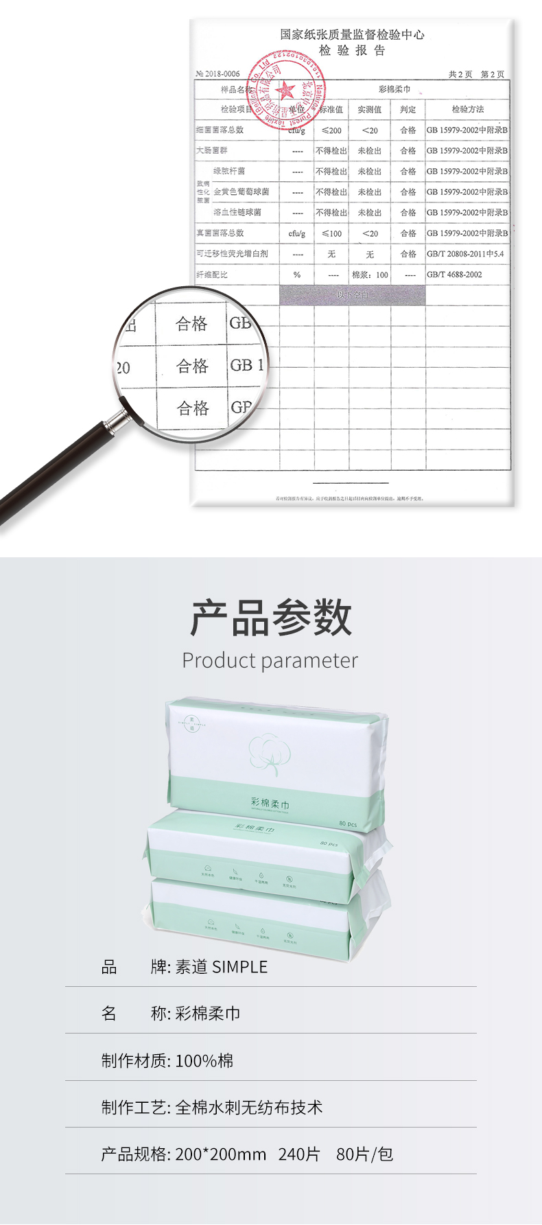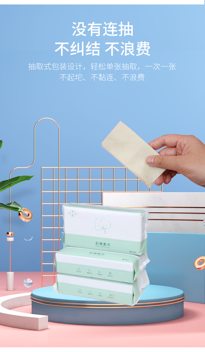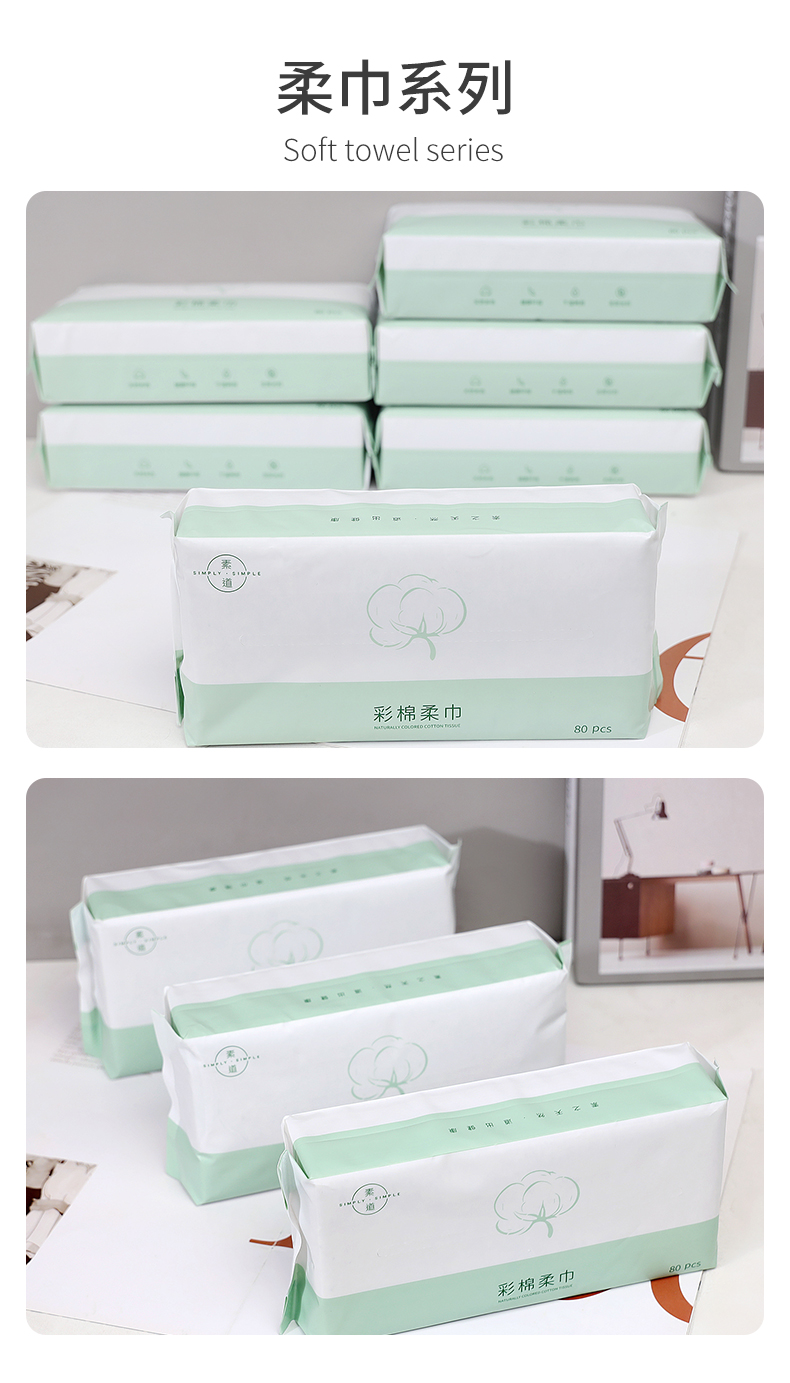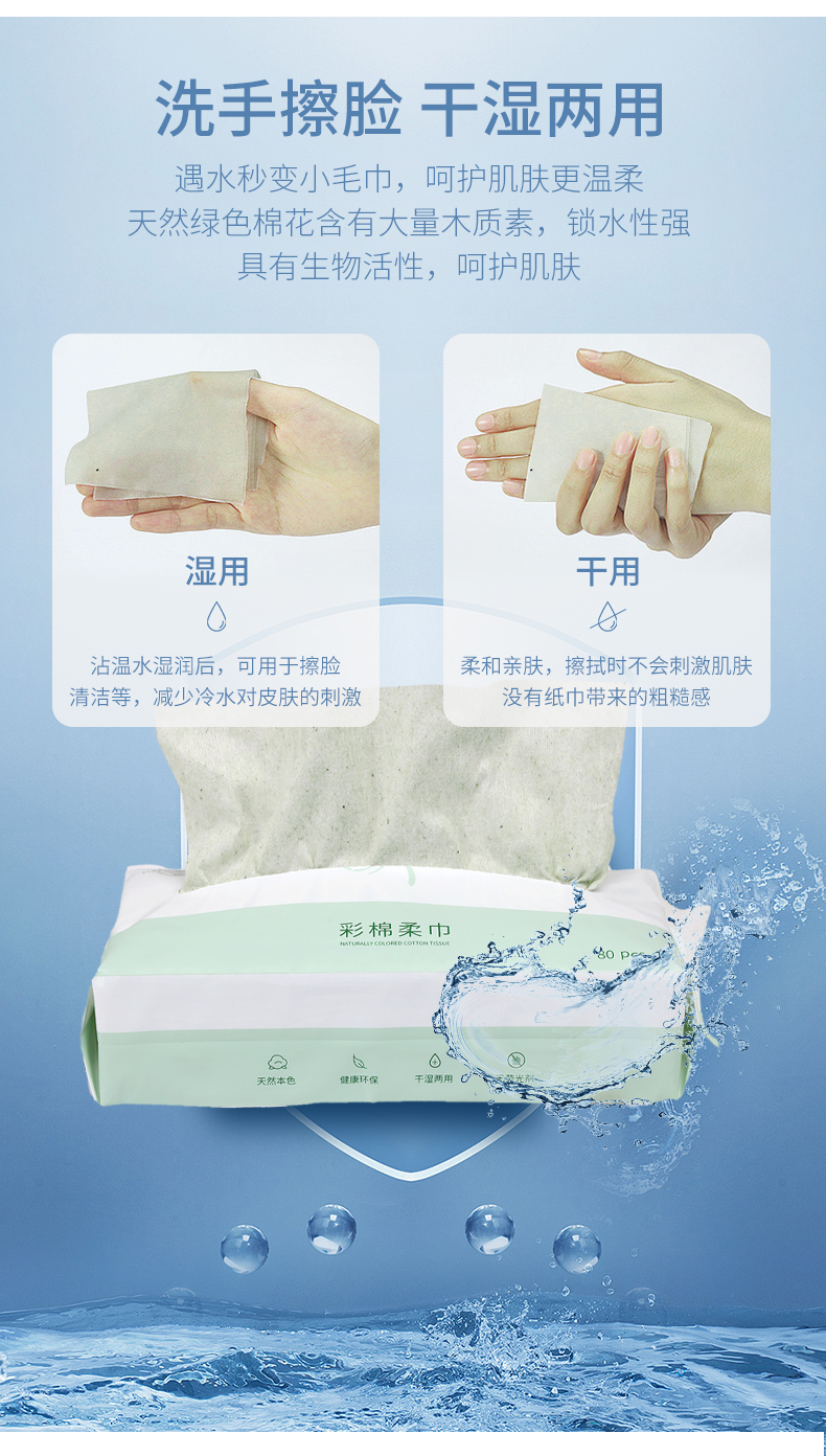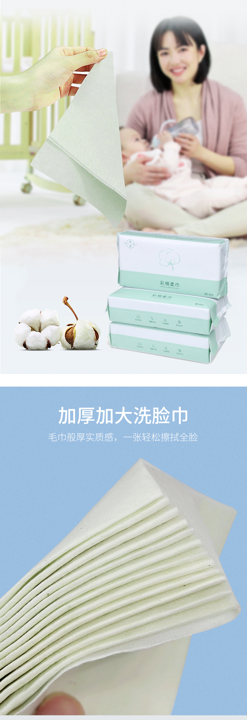 敦煌有机棉素道干湿两用洗脸巾婴儿棉柔巾20*20cm 80抽/包 3包/提