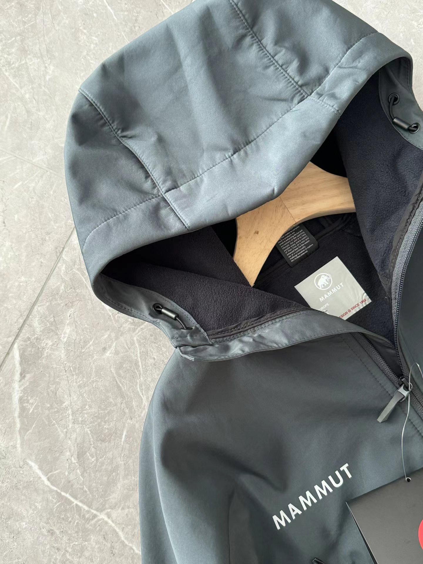 - 可与头盔同时佩戴的可调节风帽 一下摆宽度可通过抽绳调整