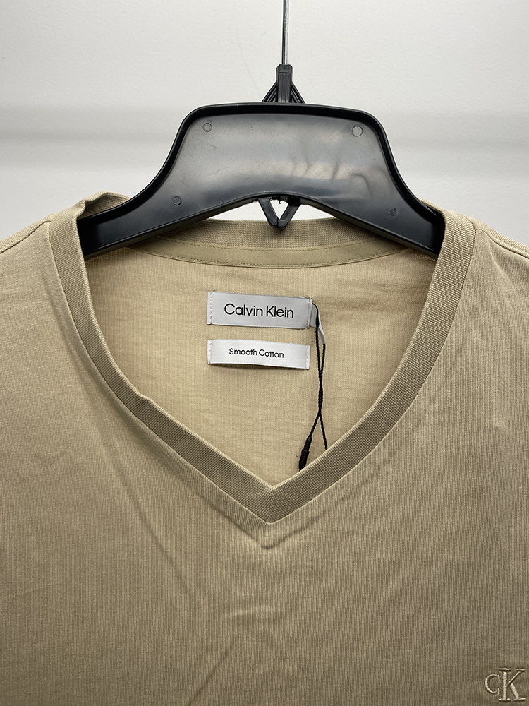 Calvin Klein/CK 男士V领纯棉纯色刺绣小标透气舒适短袖T恤