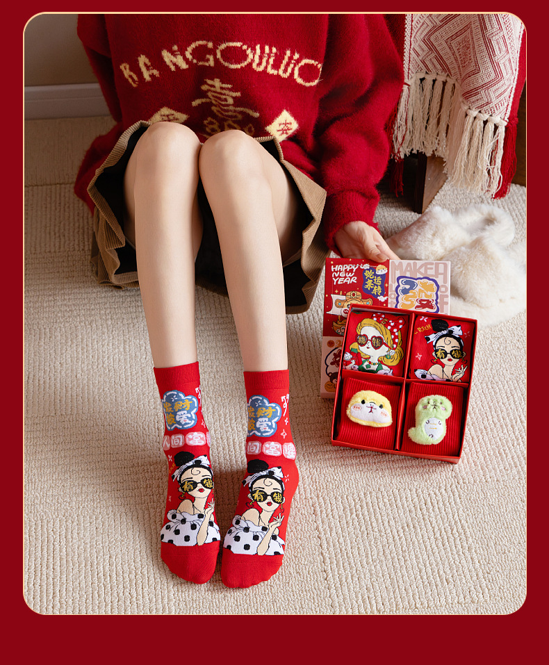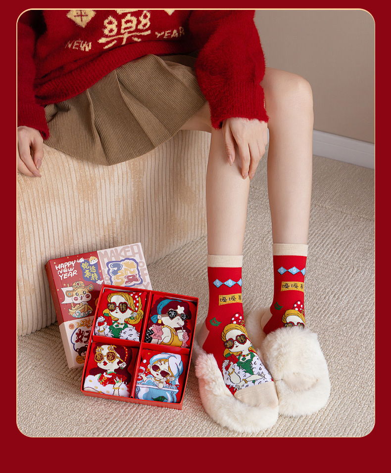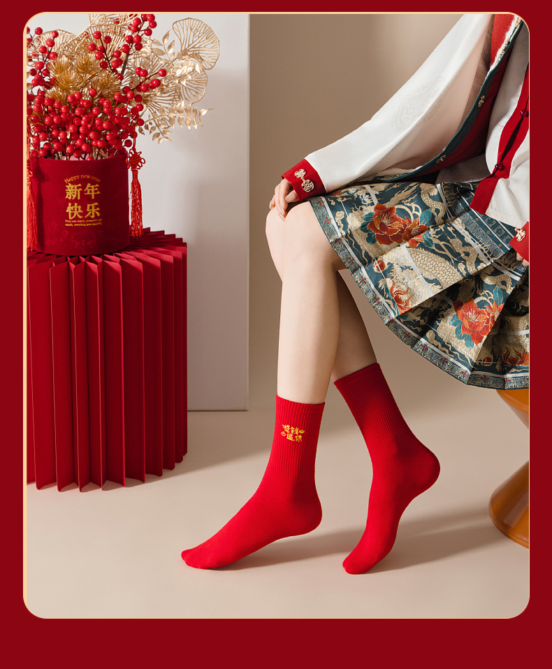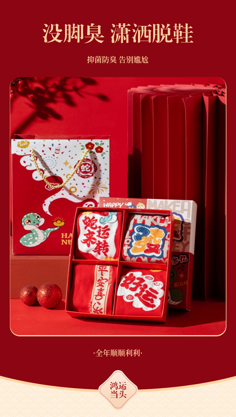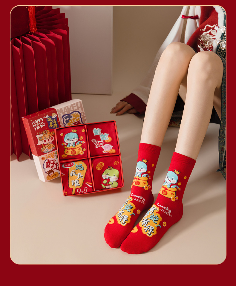 蛇年新年大红袜子礼盒本命年红色袜子高颜值男女中筒棉袜新年礼物💕