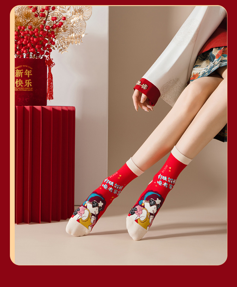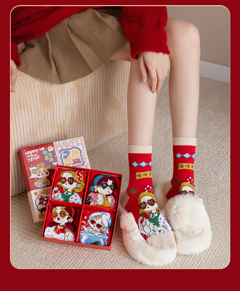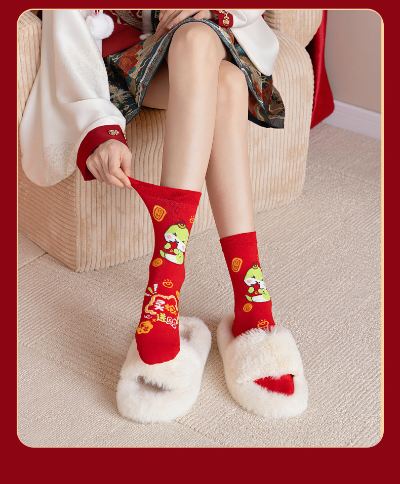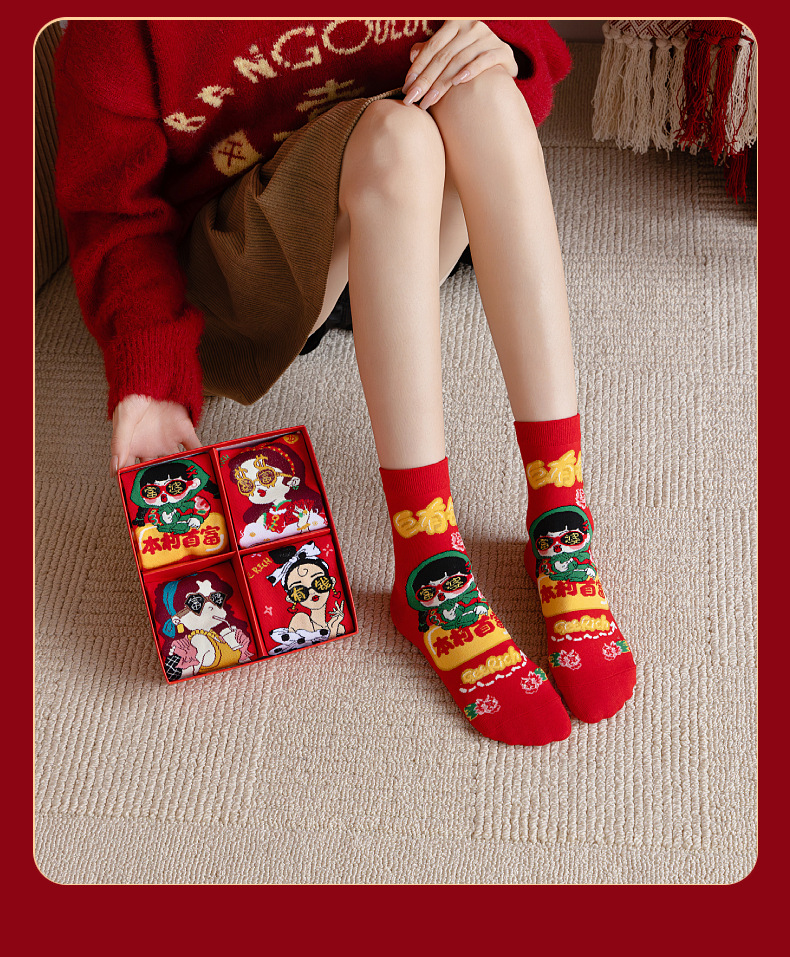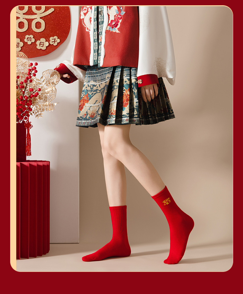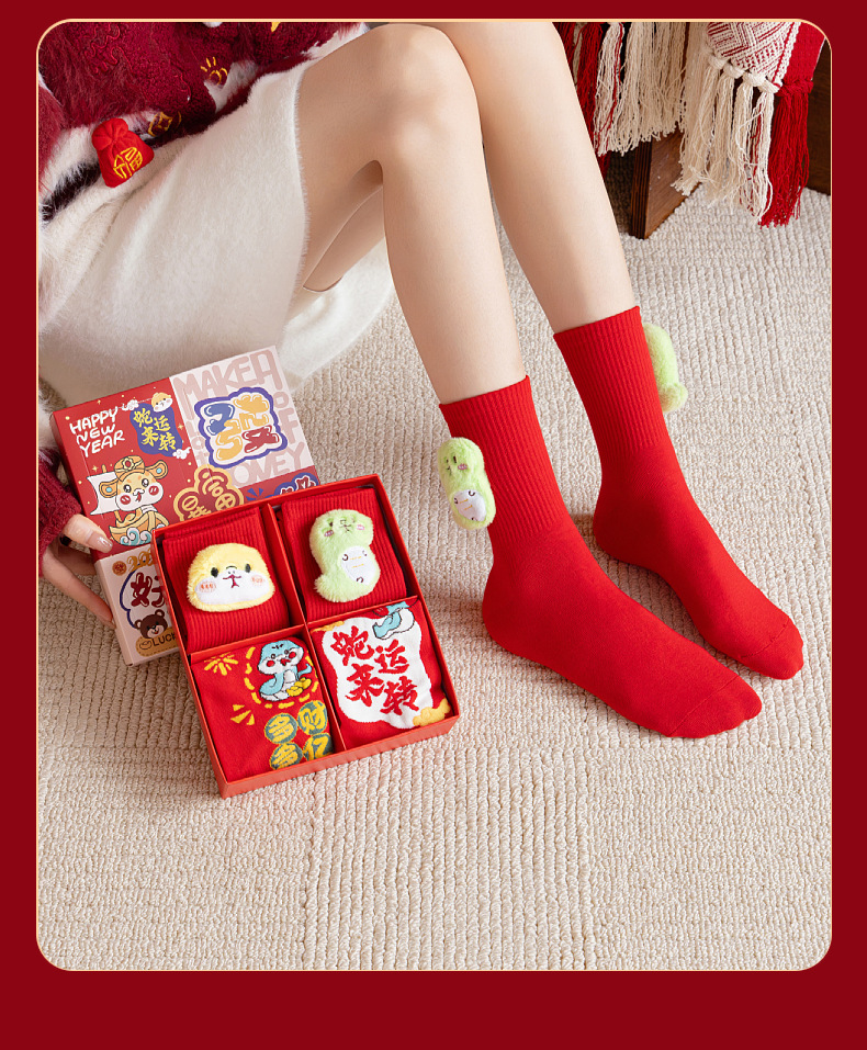 蛇年新年大红袜子礼盒本命年红色袜子高颜值男女中筒棉袜新年礼物💕
