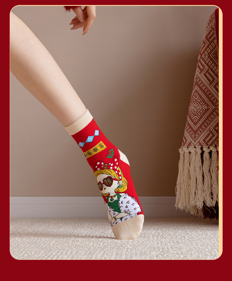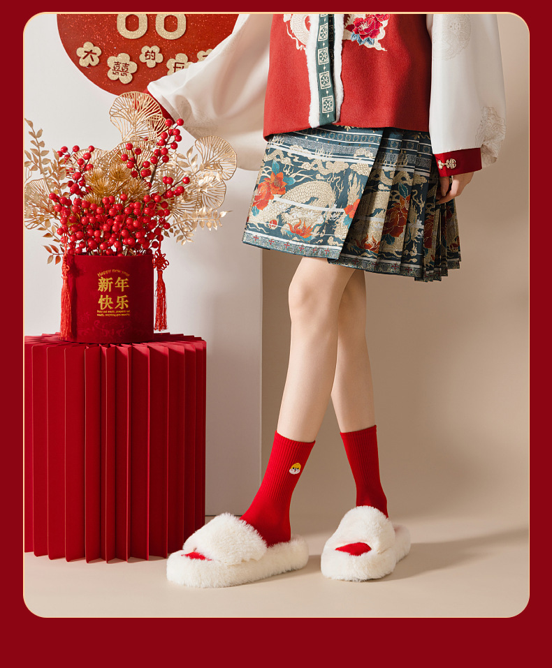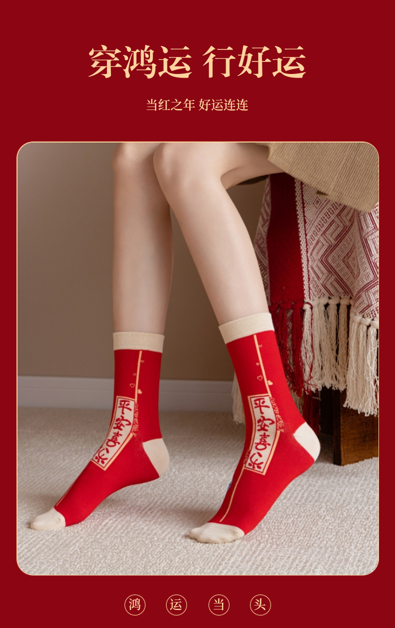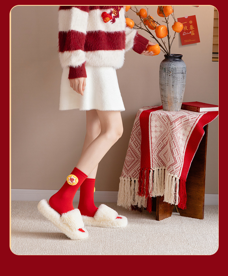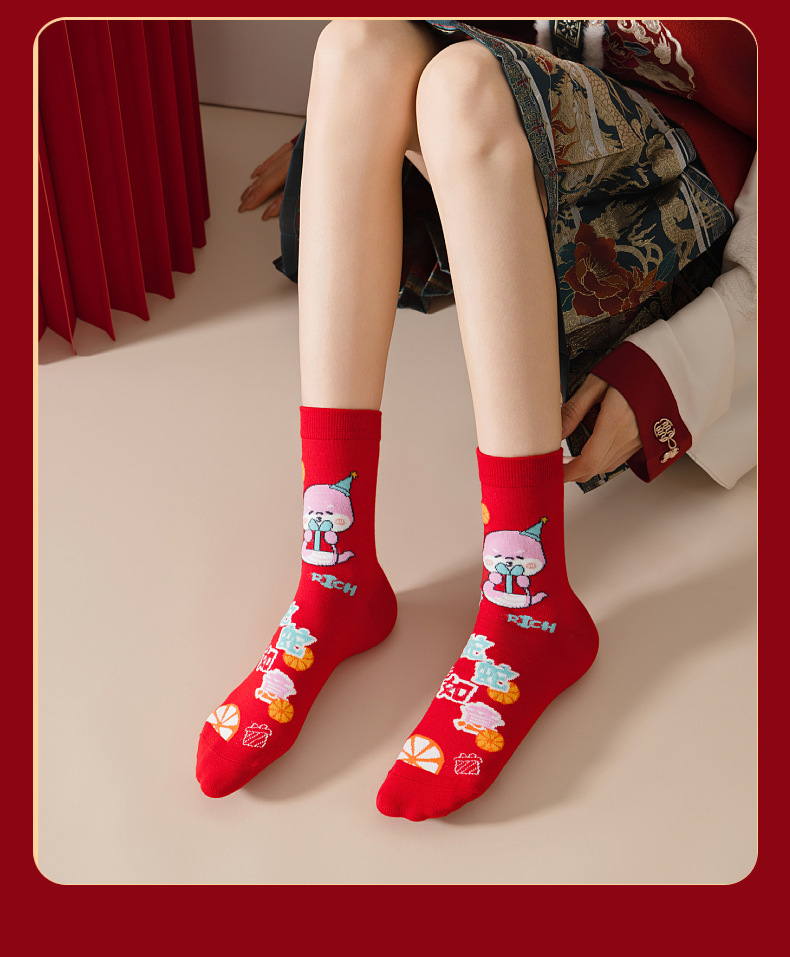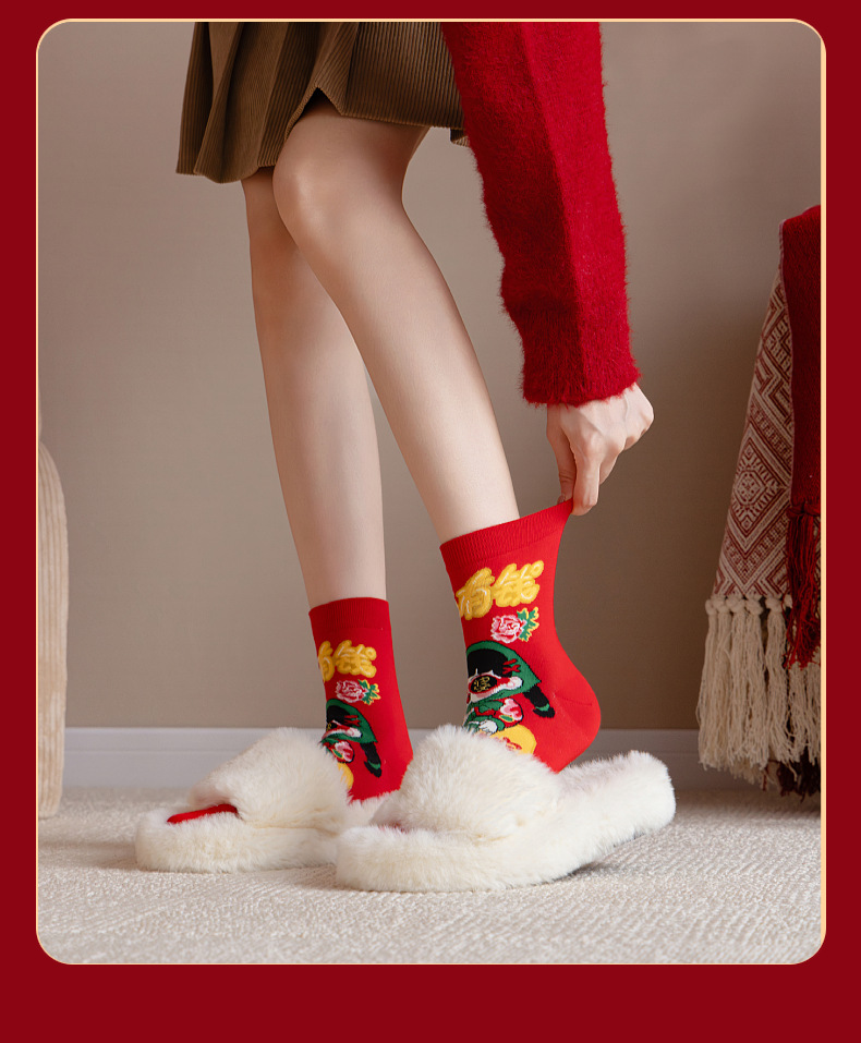 蛇年新年大红袜子礼盒本命年红色袜子高颜值男女中筒棉袜新年礼物💕