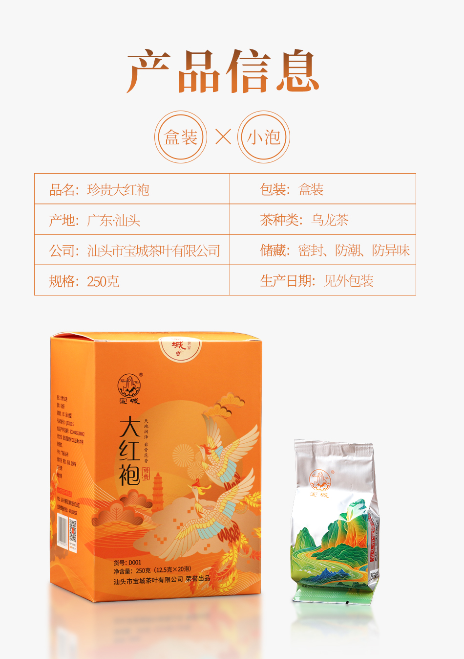 宝城珍贵大红袍茶叶两盒装共500克小泡礼盒浓香型乌龙茶岩茶D001