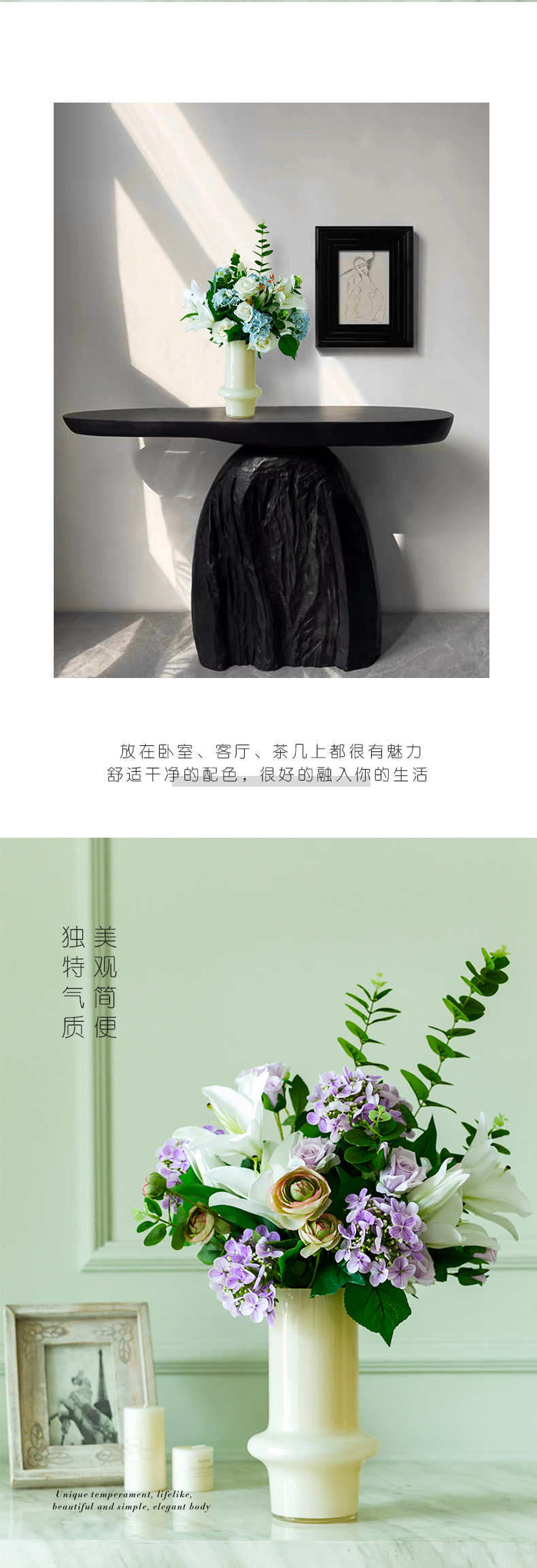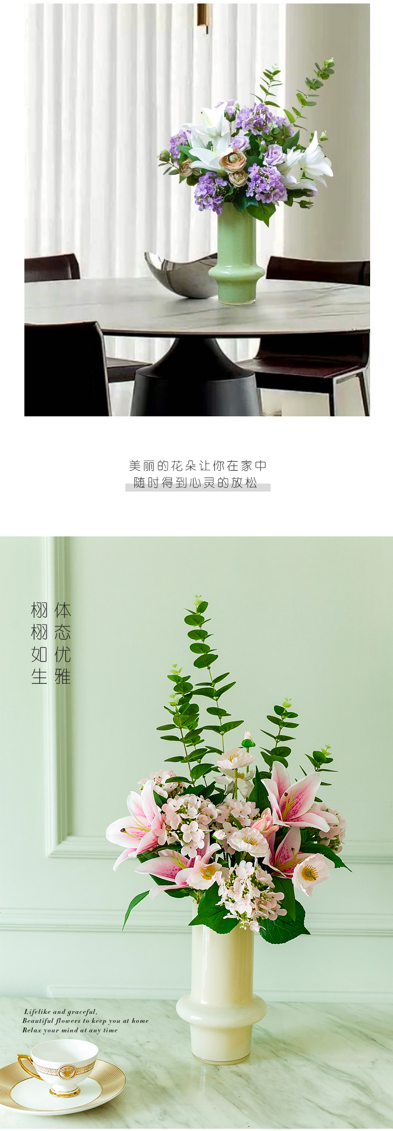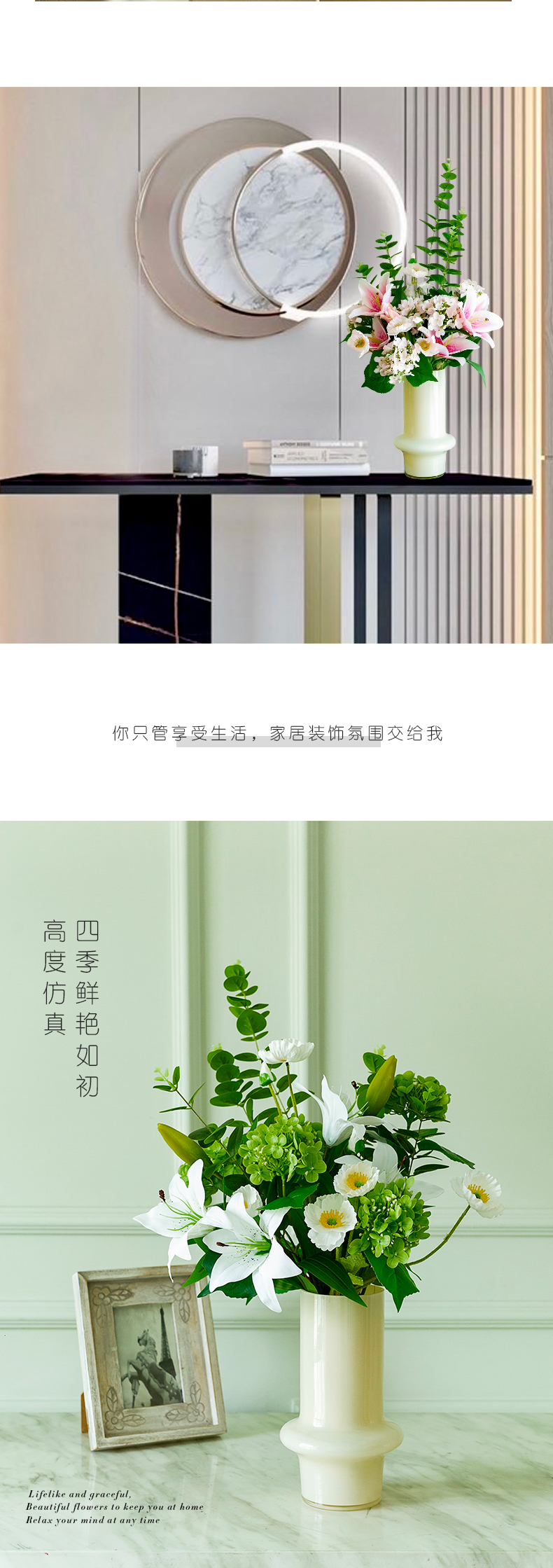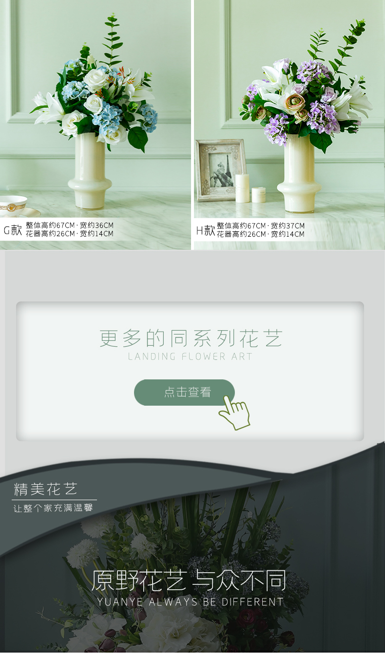 高档仿真花束花艺北欧奶油风花器摆件客厅电视柜餐桌酒店摆设假花