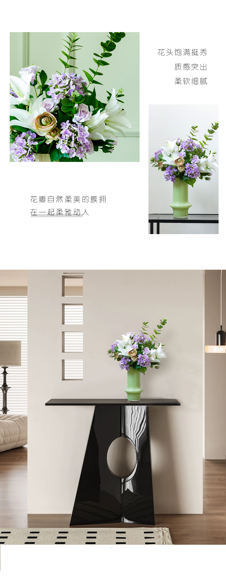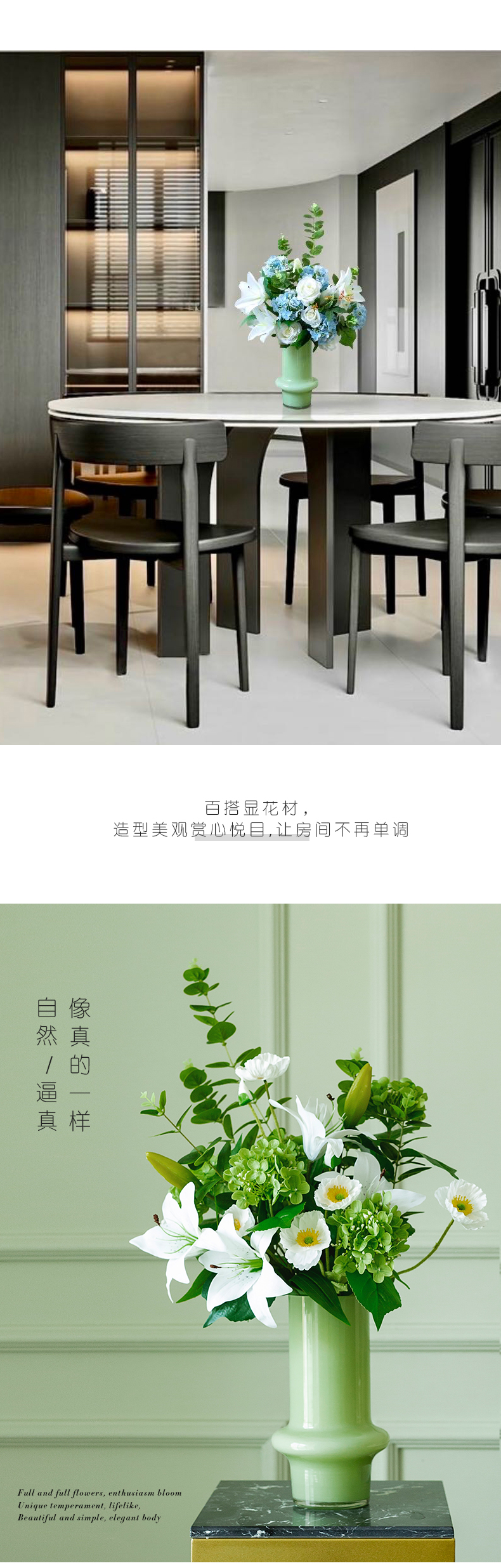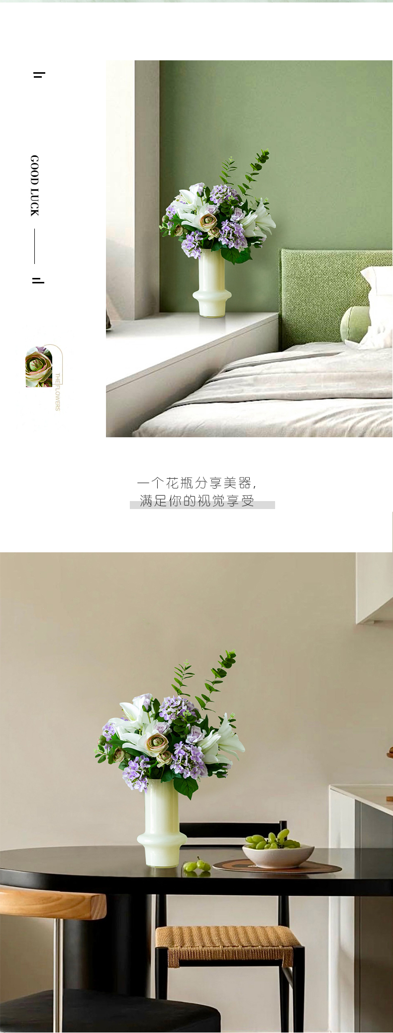 高档仿真花束花艺北欧奶油风花器摆件客厅电视柜餐桌酒店摆设假花