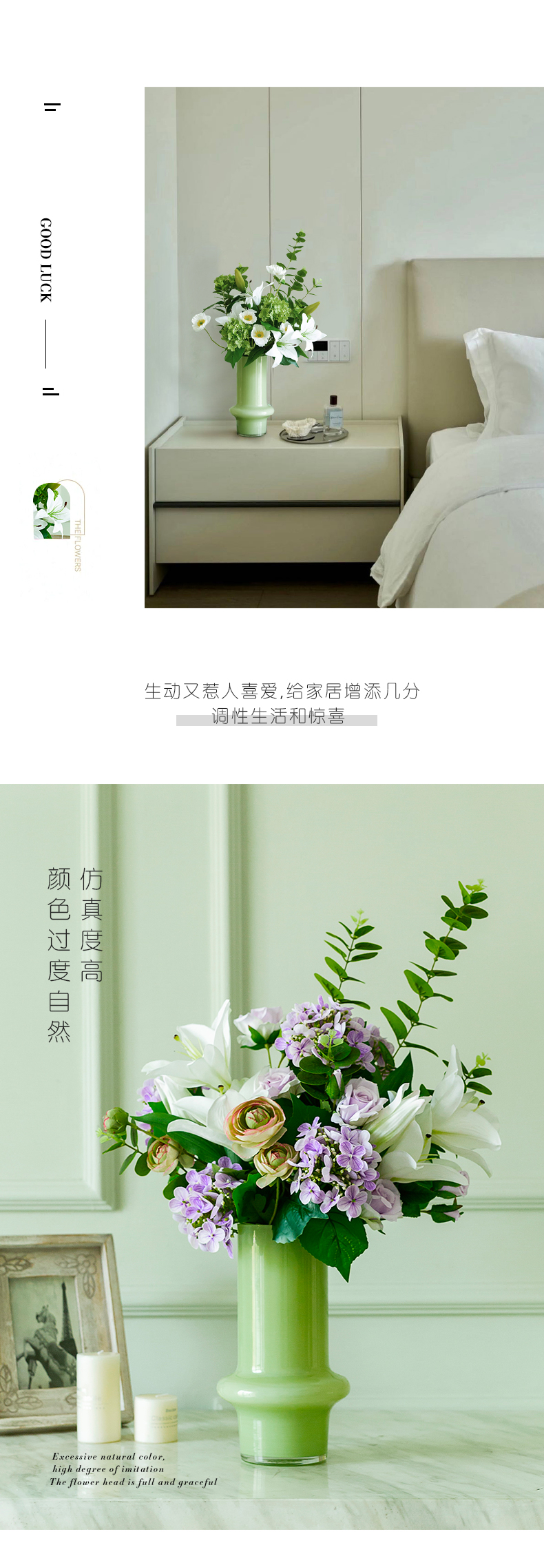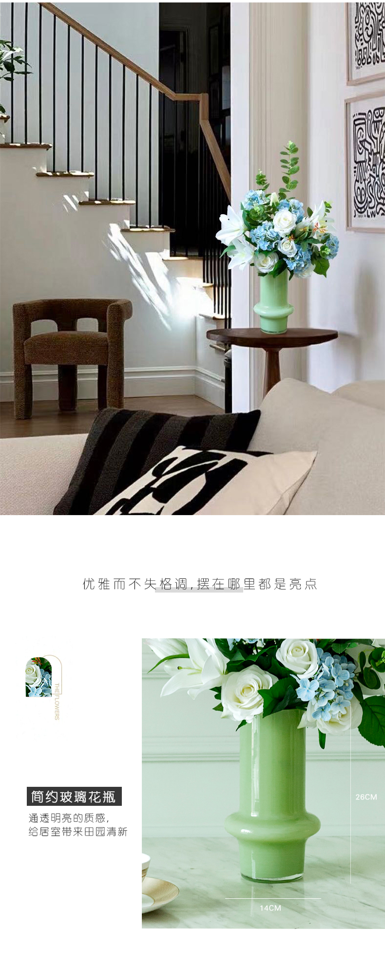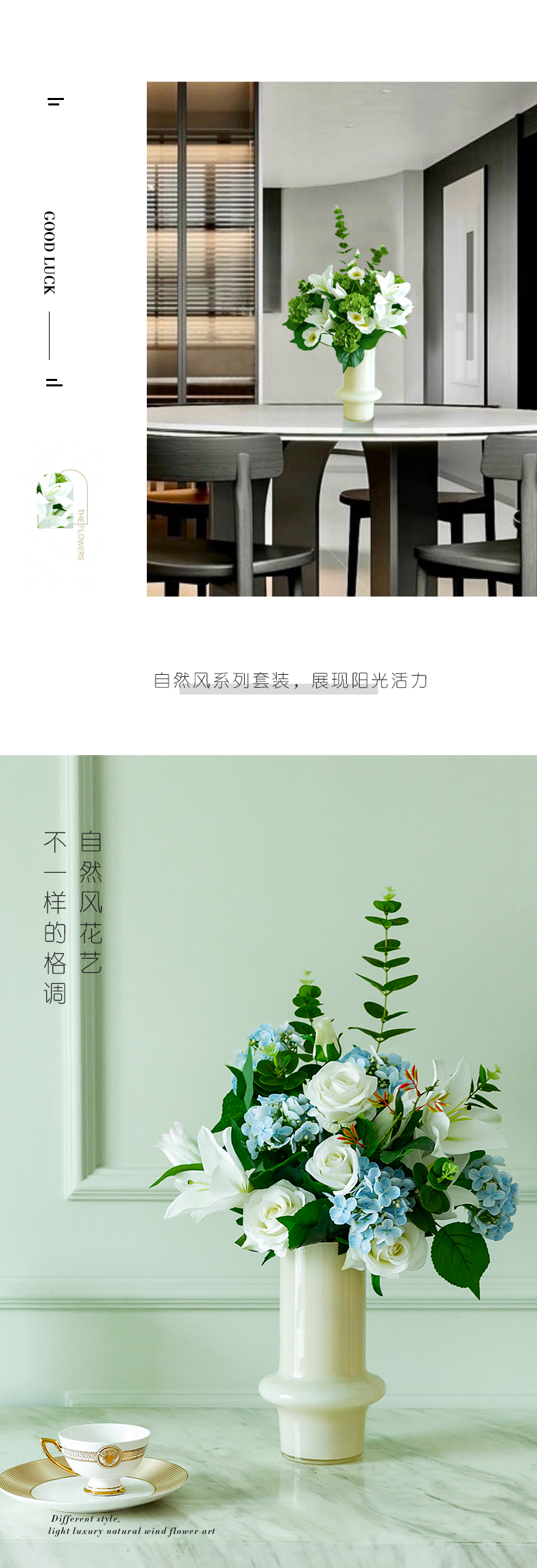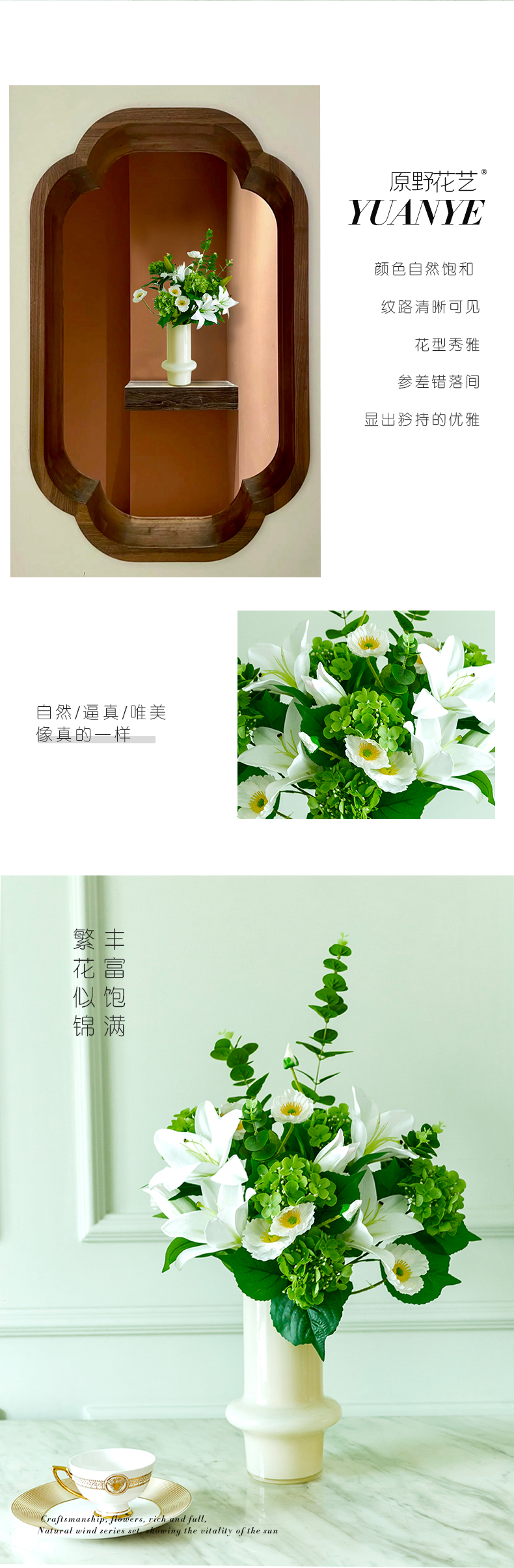 高档仿真花束花艺北欧奶油风花器摆件客厅电视柜餐桌酒店摆设假花