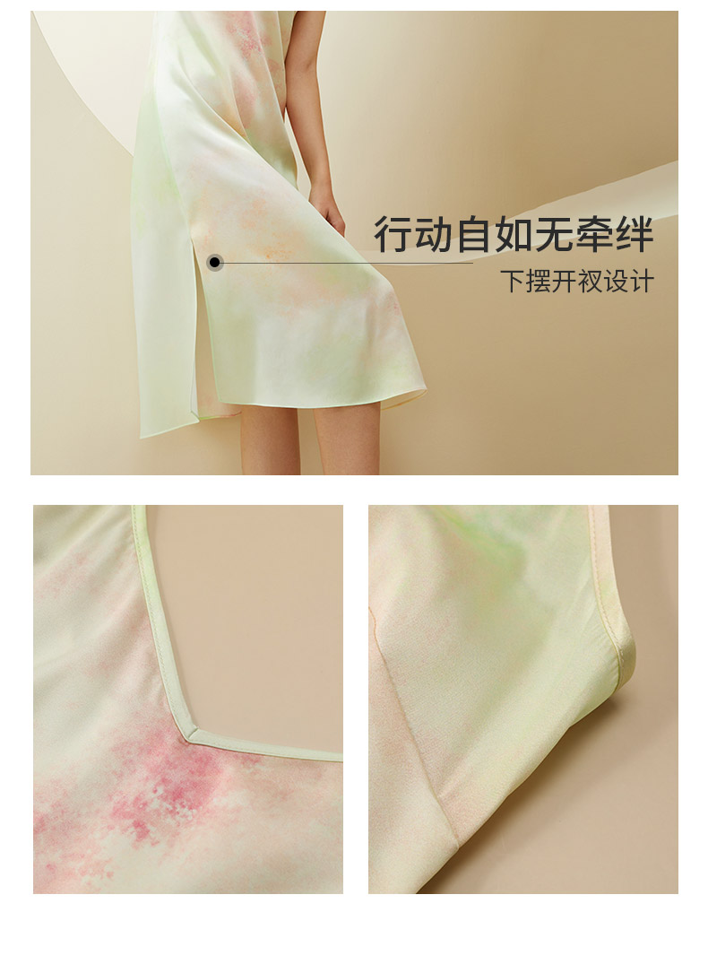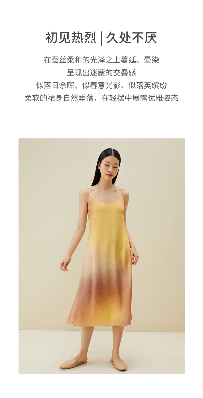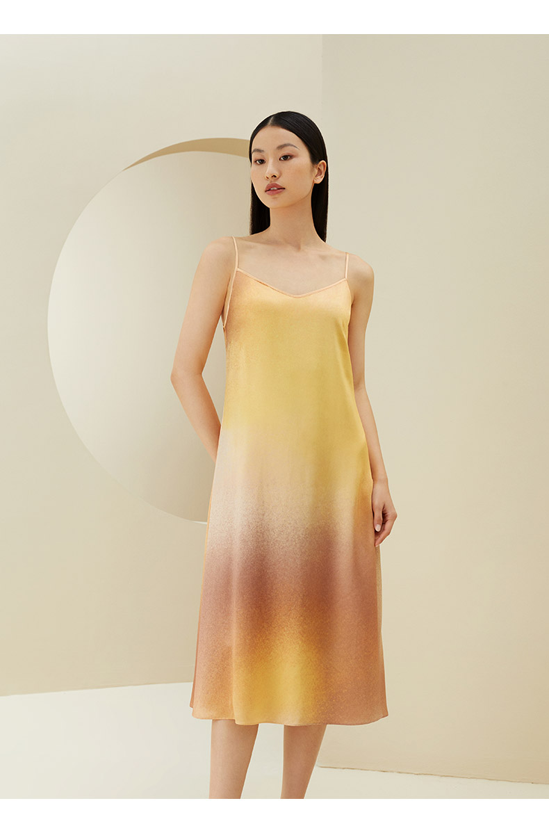 女重磅真丝渐变印花开衩吊带裙YSFDA308