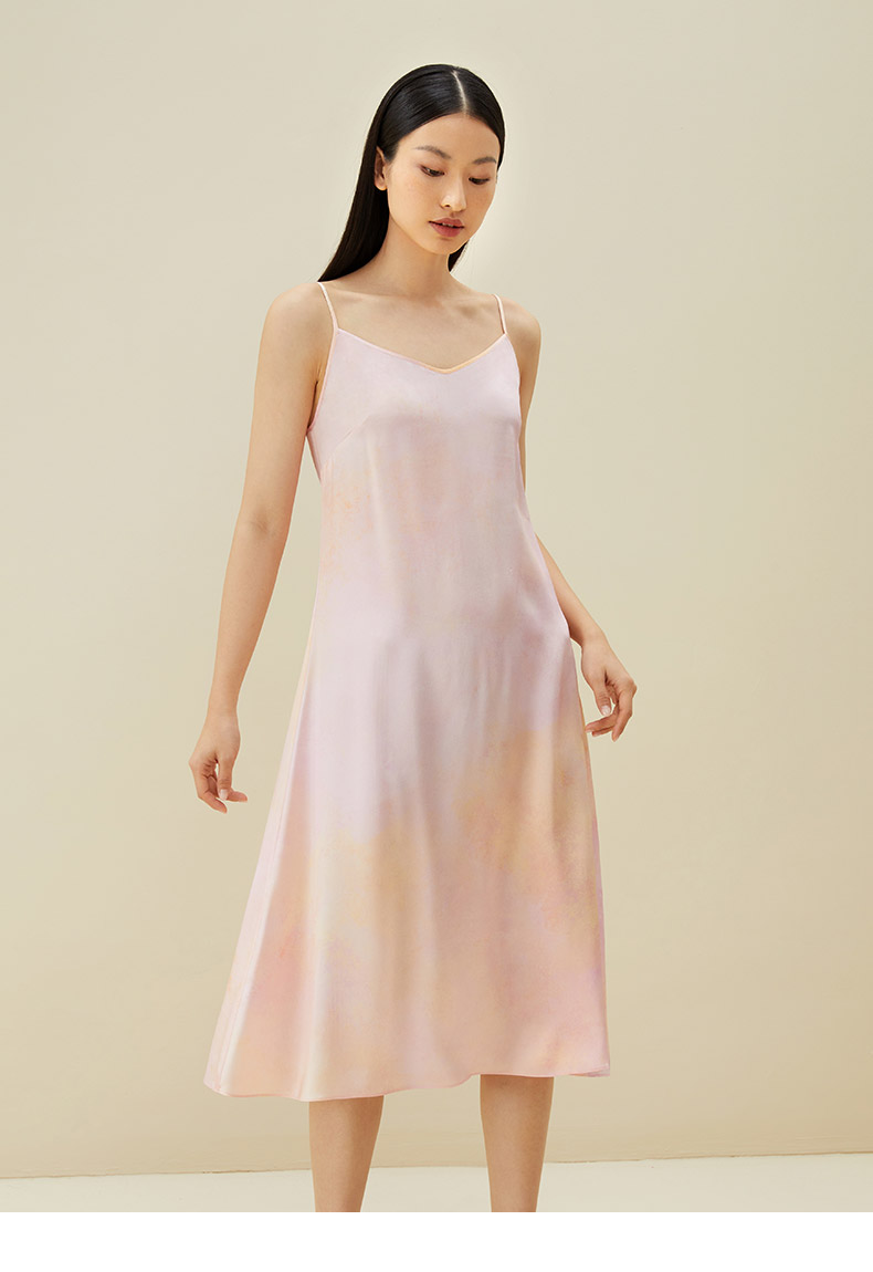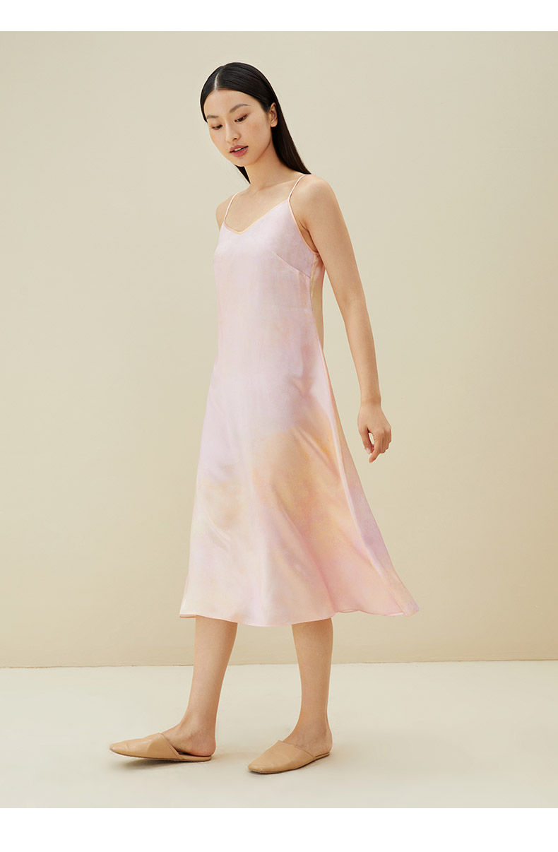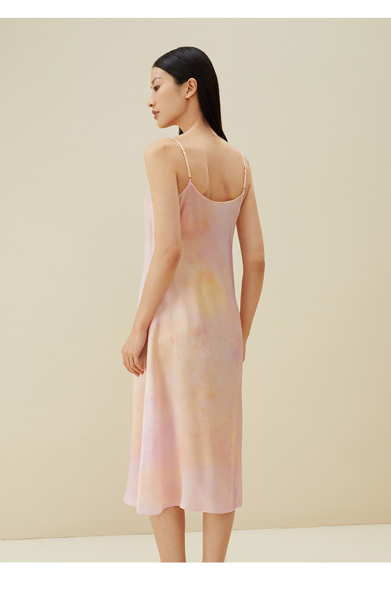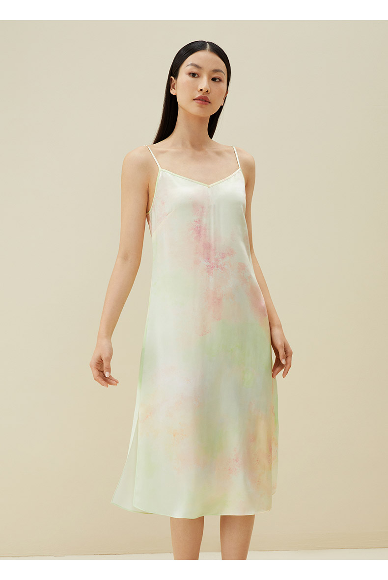 女重磅真丝渐变印花开衩吊带裙YSFDA308