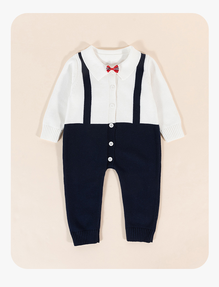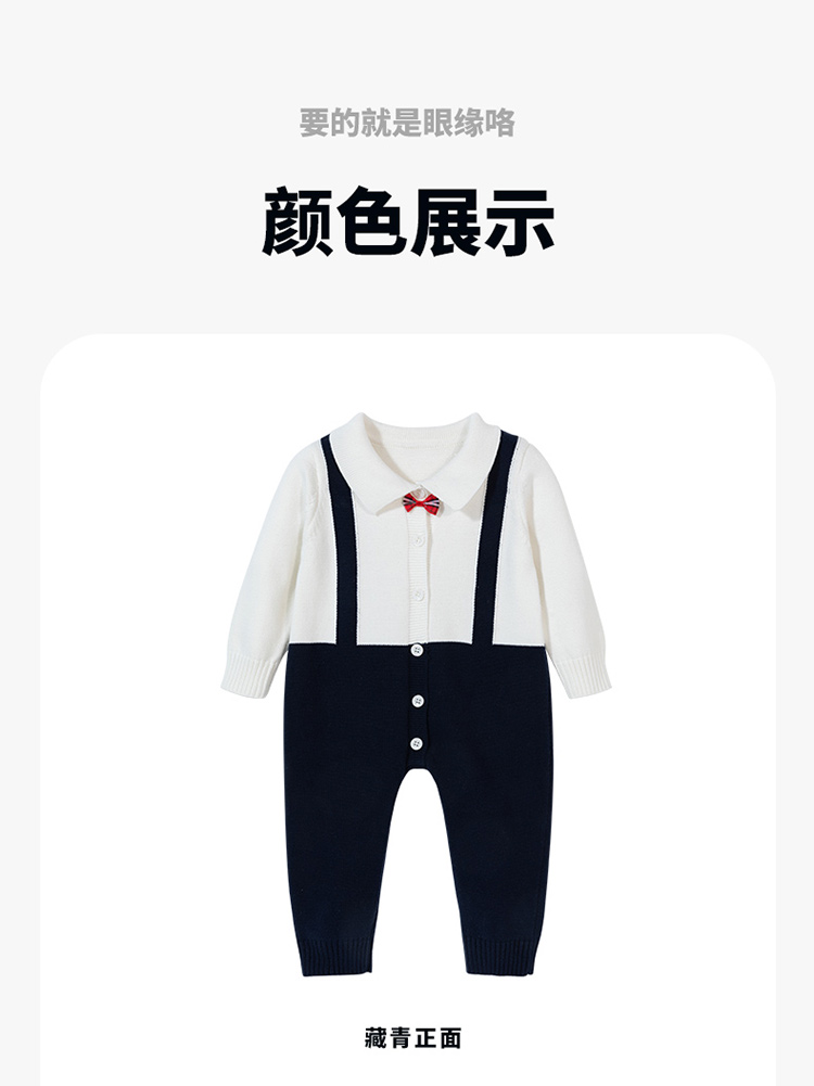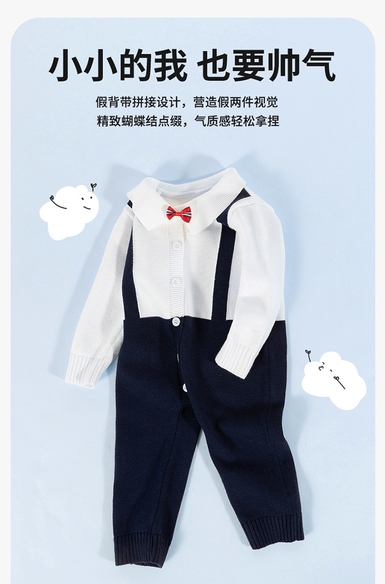 贝贝怡童装春秋款男童假背带拼接设计哈衣宝宝保暖针织连体衣ZB3CL007