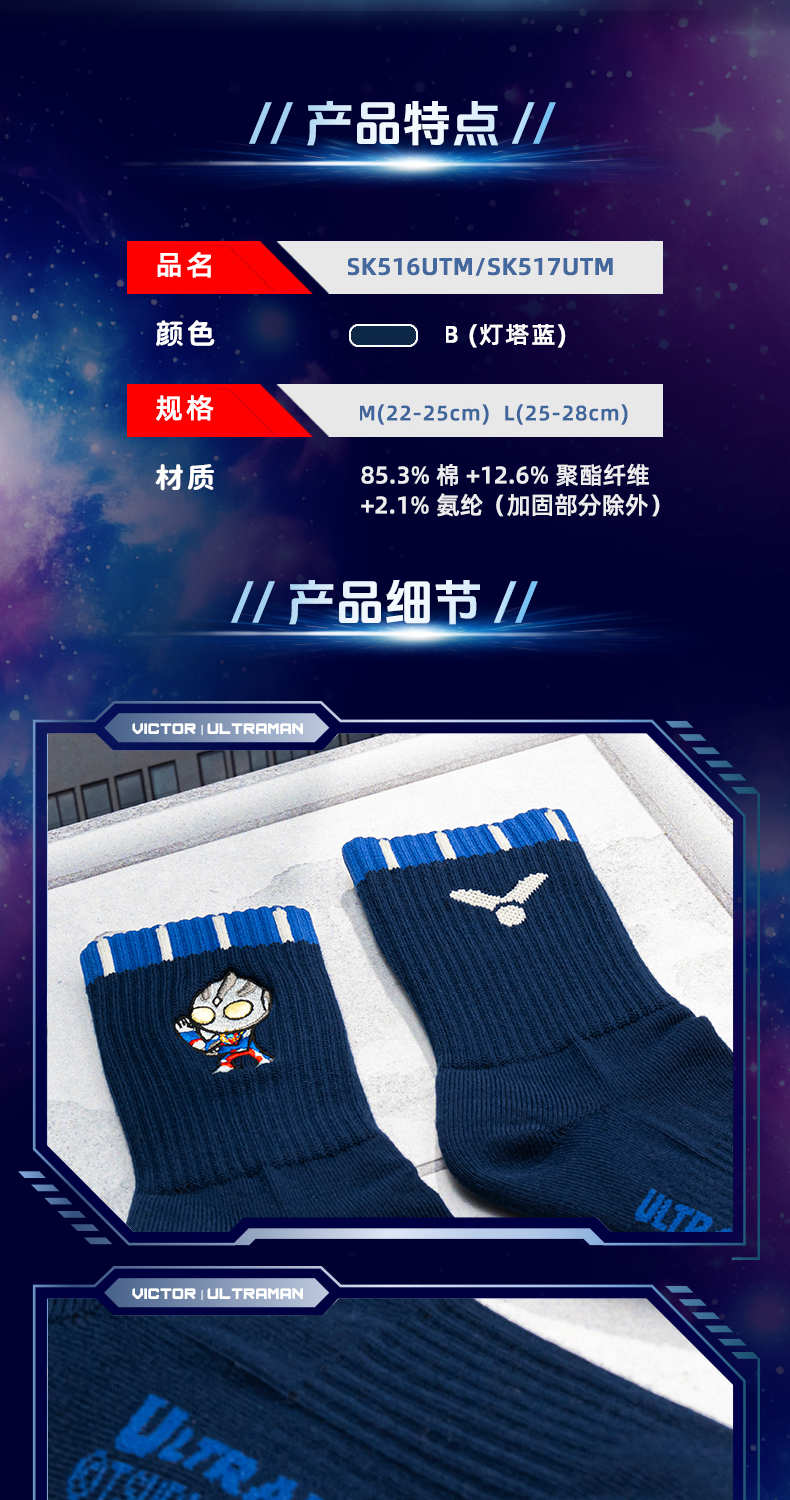 威克多胜利 奥特曼联名系列 运动袜(高筒) SK516UTM / SK517UTM / SK518JRUTM