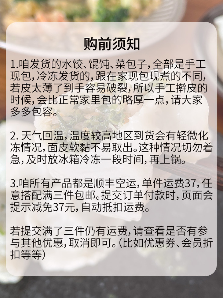 【食用注意事项】到货后冰箱冷冻,煮前无需解冻。